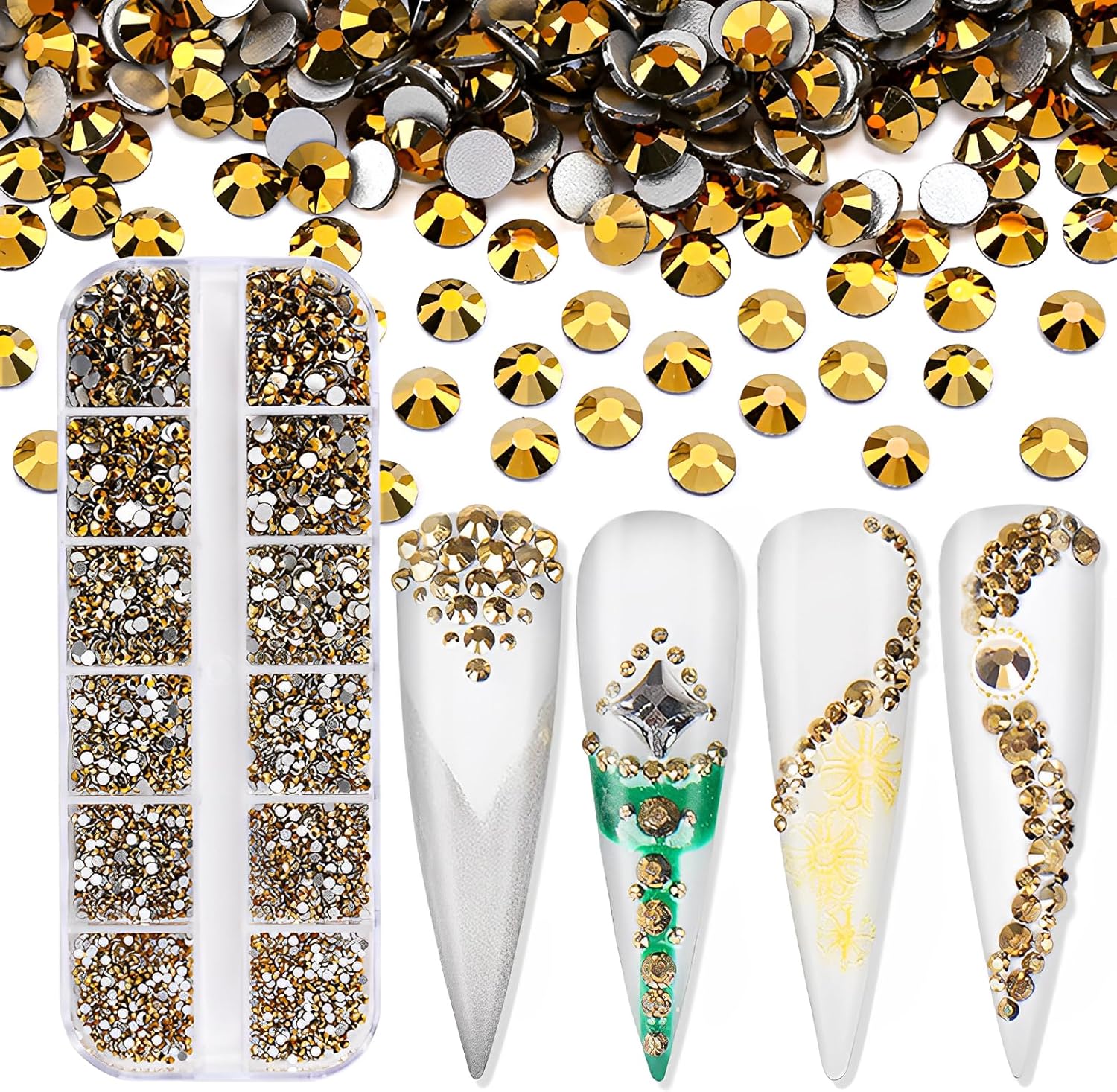 3600pcs Flatback Rhinestones Glass Charms Diamantes Gems Stones for Nail Art 6 Size ss4~ss12 Box Gold Hematite