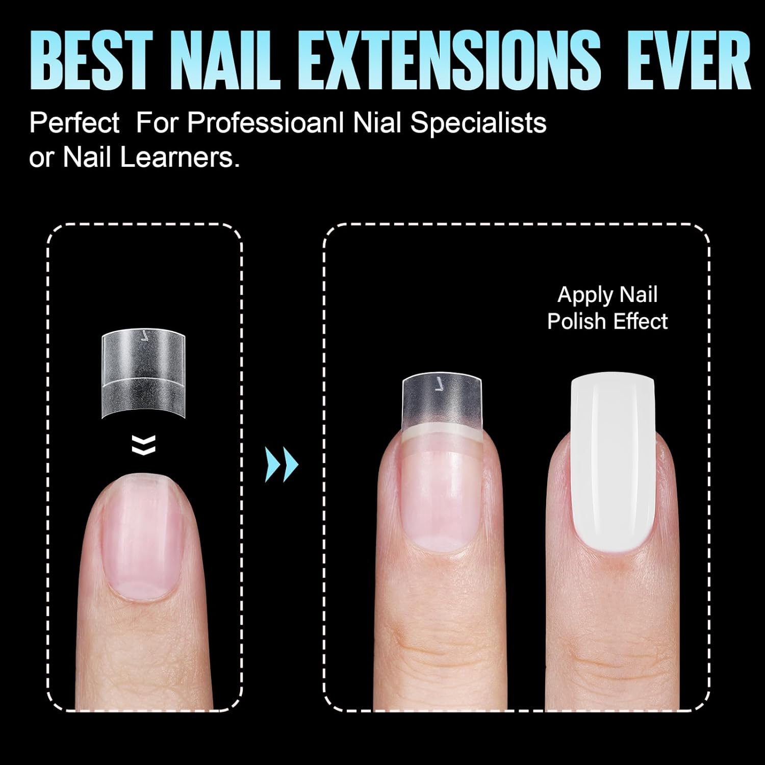 - 【Long Lasting 21 days+】According to the correct use method, it only takes a few minutes to extend your nails, and at the same time maintain the nail extension effect long lasting for 21+ days. No smell, no harm to nails. No crease acrylic half cover nail tips. Save time and money on trips to the nail salon, enjoy nail diy fun with your friends and family.