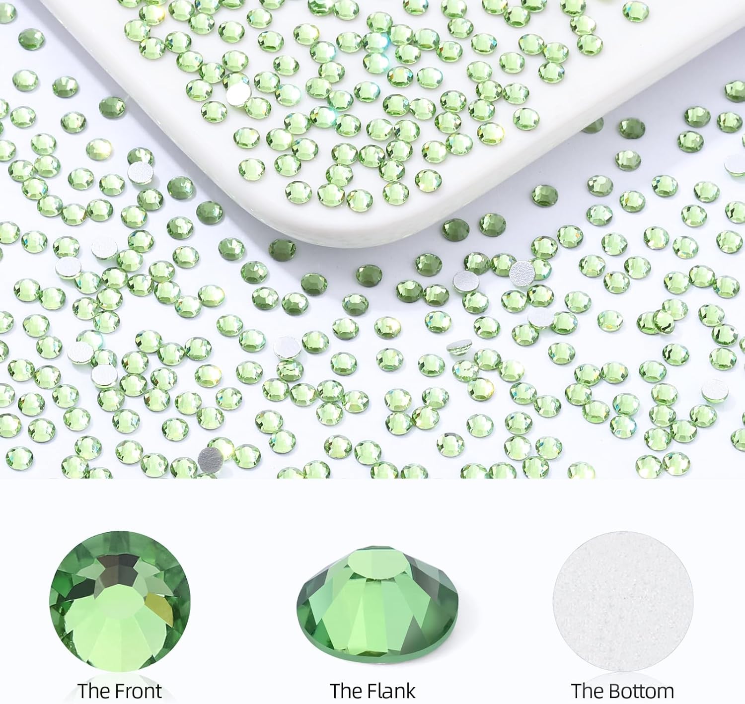 Light Green Flatback Rhinestones, Glass Rhinestones for Nail Art and Craft, Glue Fix, Loose Crystal Gemstones(Lt.Green, SS10, 1440pcs, 2.7-2.8mm)