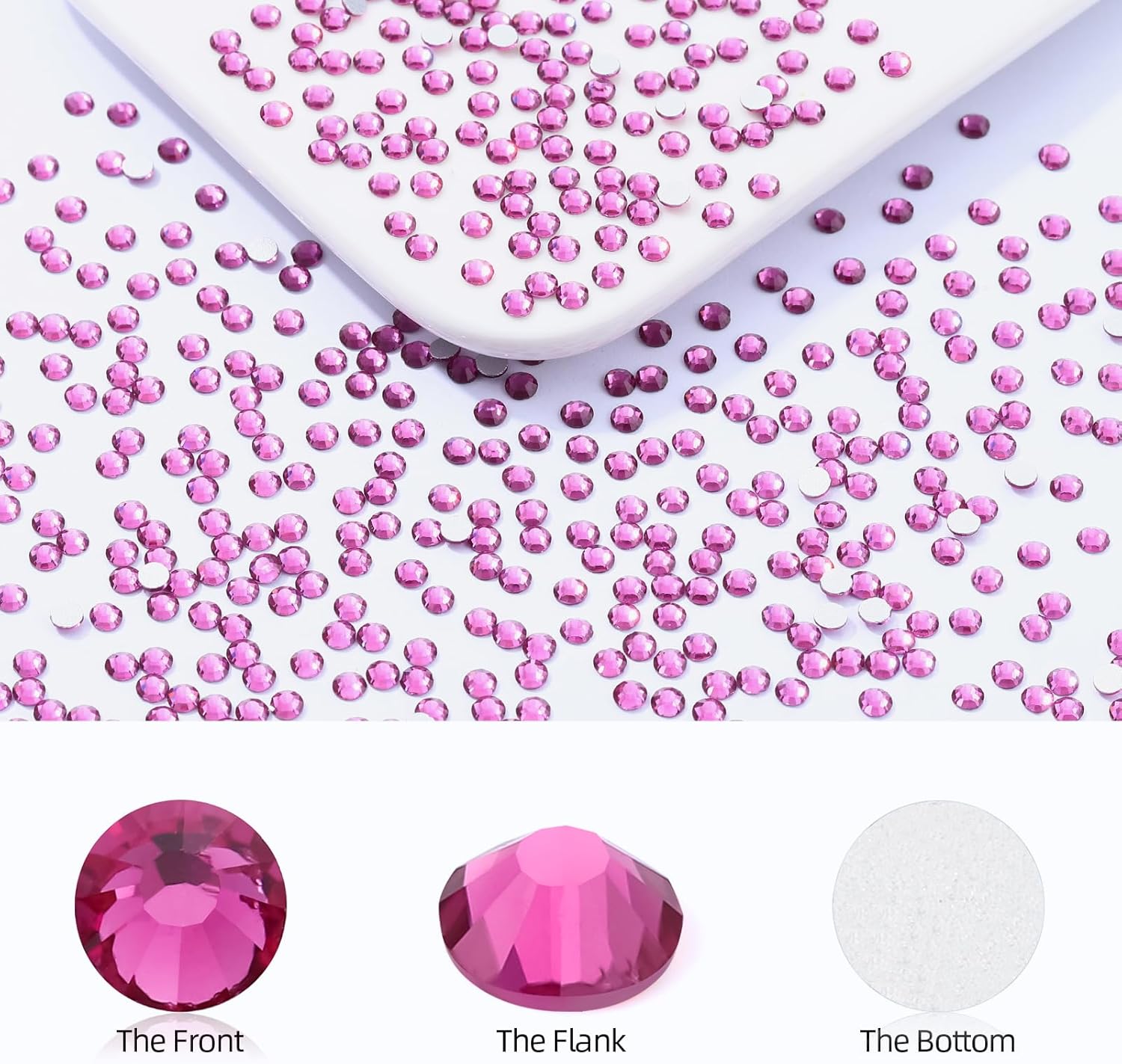 Fuchsia Flatback Rhinestones, Glass Rhinestones for Nail Art and Craft, Glue Fix, Loose Crystal Gemstones(Fuchsia, SS6, 1440pcs, 1.9-2.0mm)