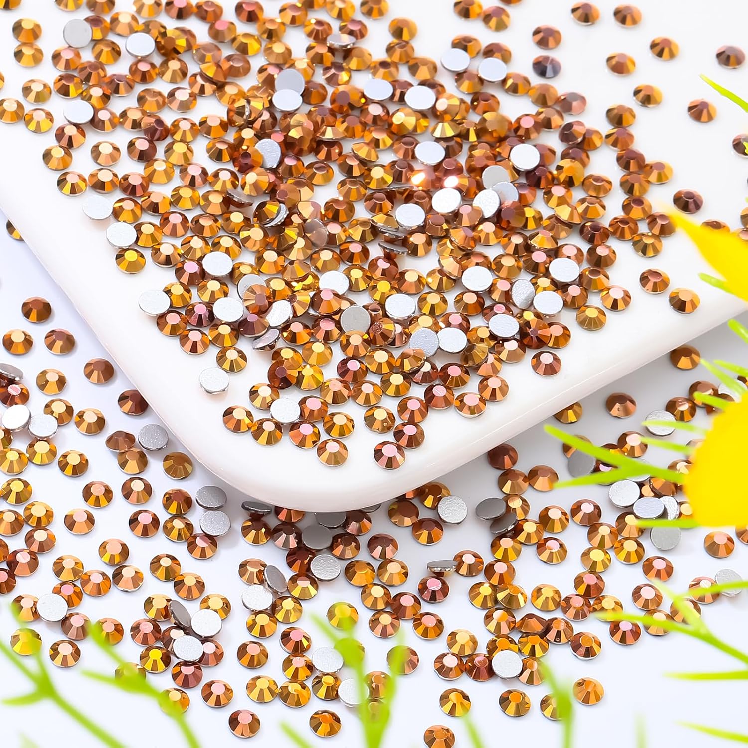 Gold Flatback Rhinestones, Glass Rhinestones for Nail Art and Craft, Glue Fix, Loose Crystal Gemstones(Gold, SS6, 1440pcs, 1.9-2.0mm)