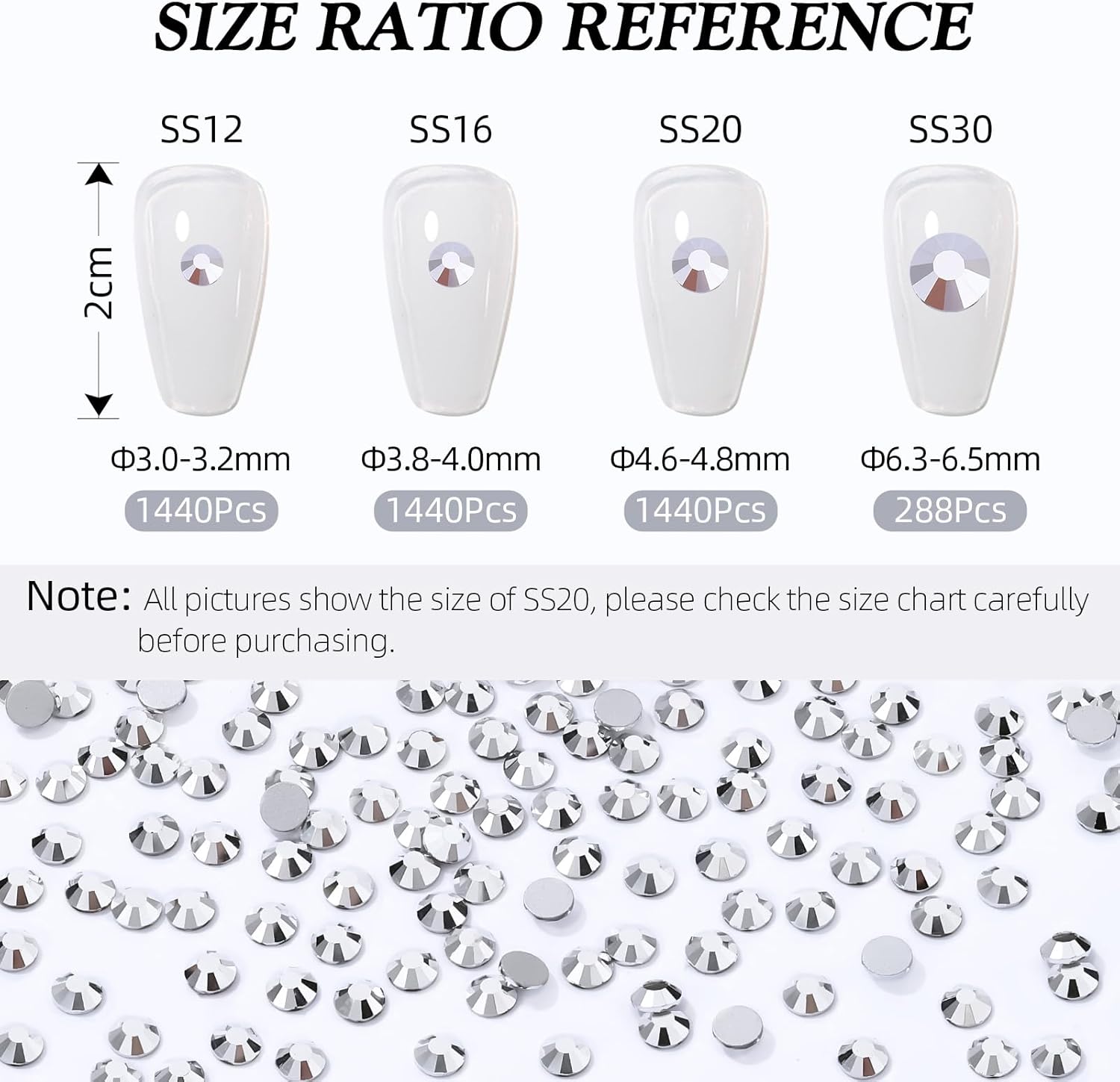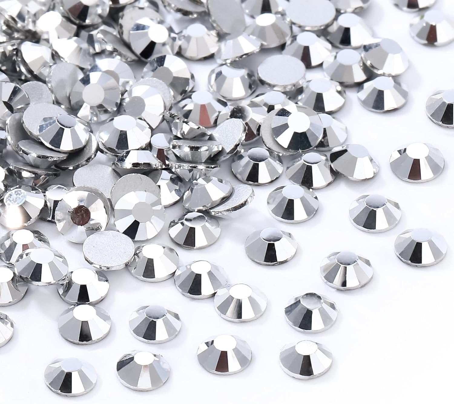 Silver Flatback Rhinestones, Glass Rhinestones for Nail Art and Craft, Glue Fix, Loose Crystal Gemstones(Silver, SS12, 1440pcs, 2.9-3.0mm)