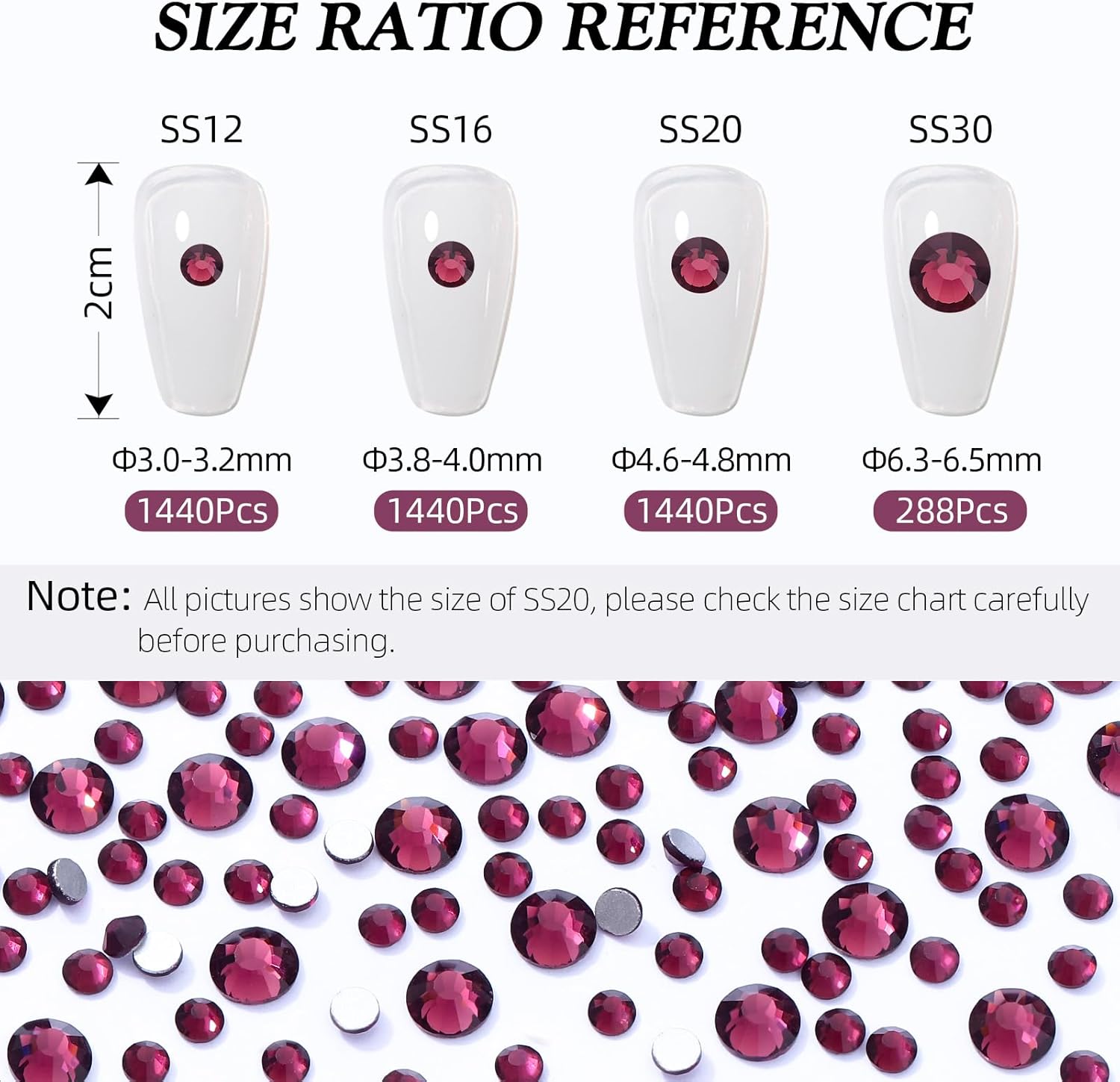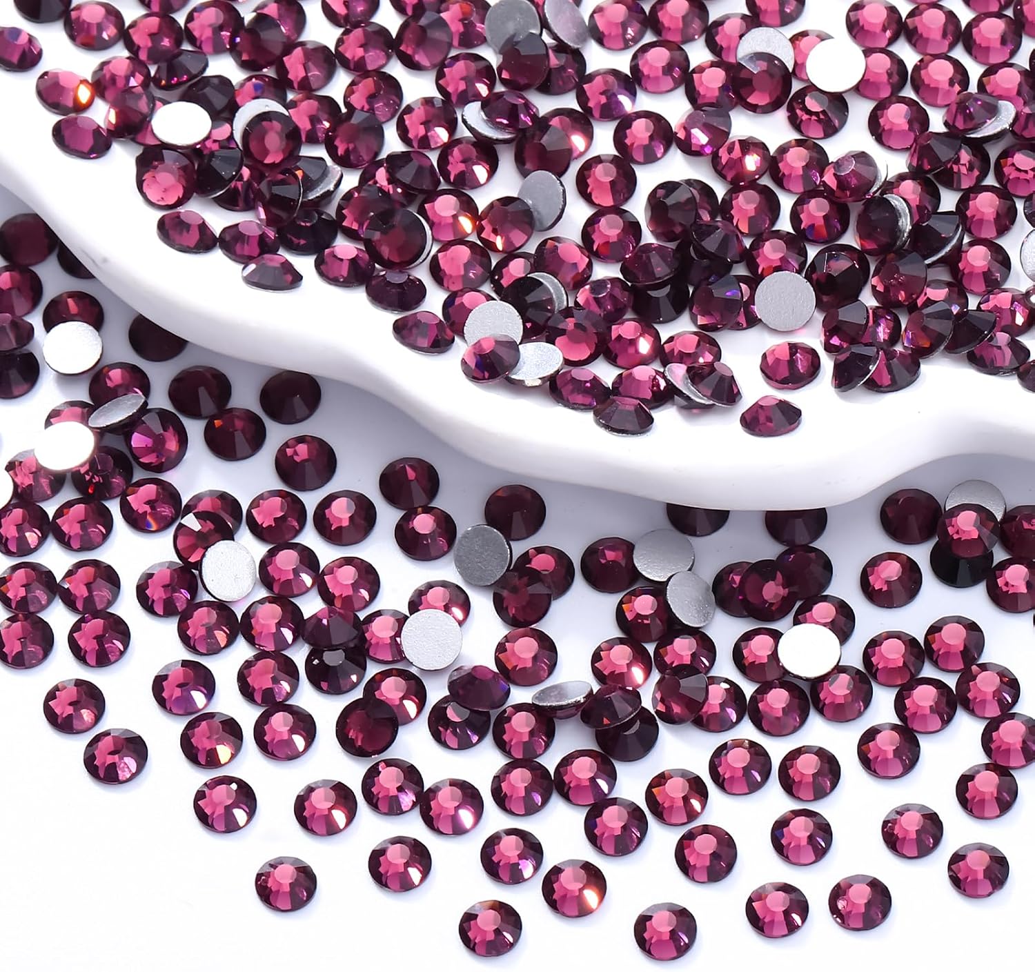 Purple Flatback Rhinestones, Glass Rhinestones for Nail Art and Craft, Glue Fix, Loose Crystal Gemstones(Purple, SS30, 288pcs, 6.4-6.6mm)