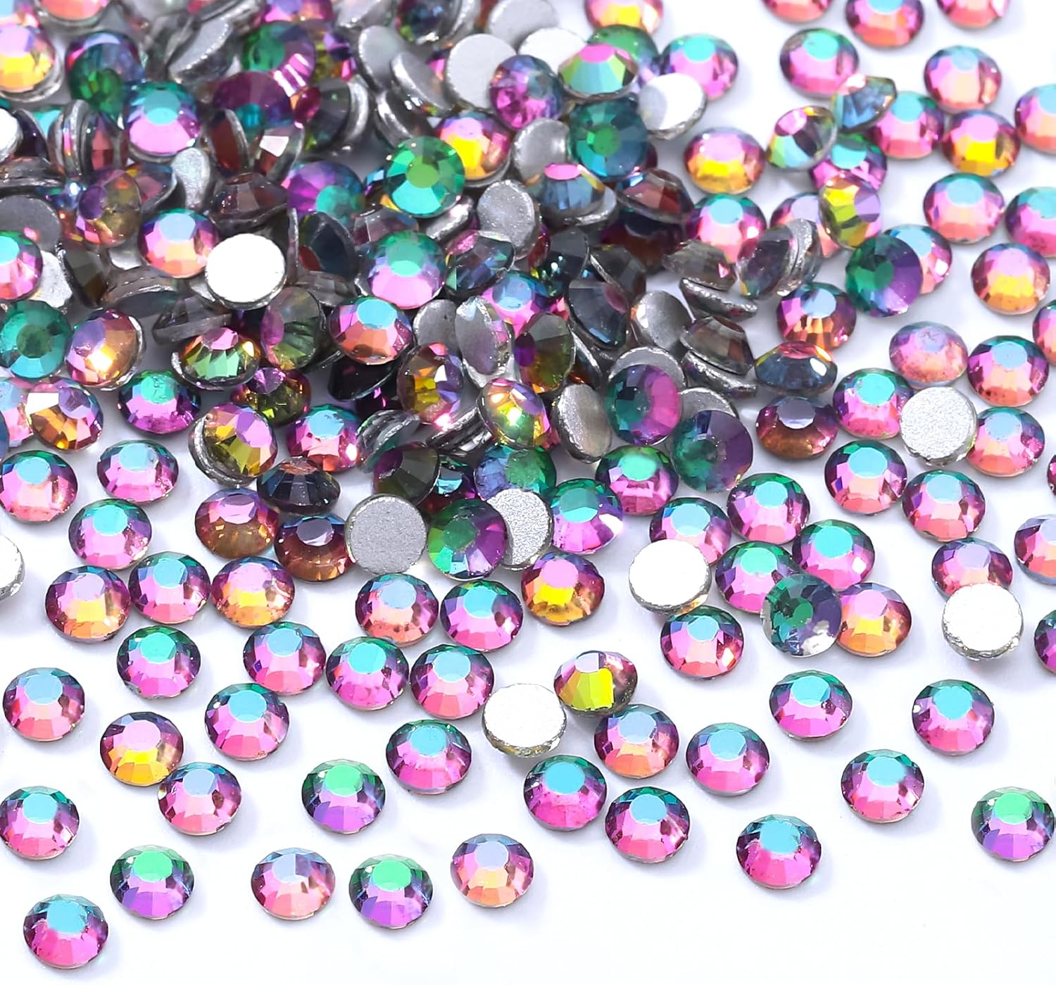 Green Volcano Flatback Rhinestones, Glass Rhinestones for Nail Art and Craft, Glue Fix, Loose Crystal Gemstones(Green Volcano, SS10, 1440pcs, 2.7-2.8mm)