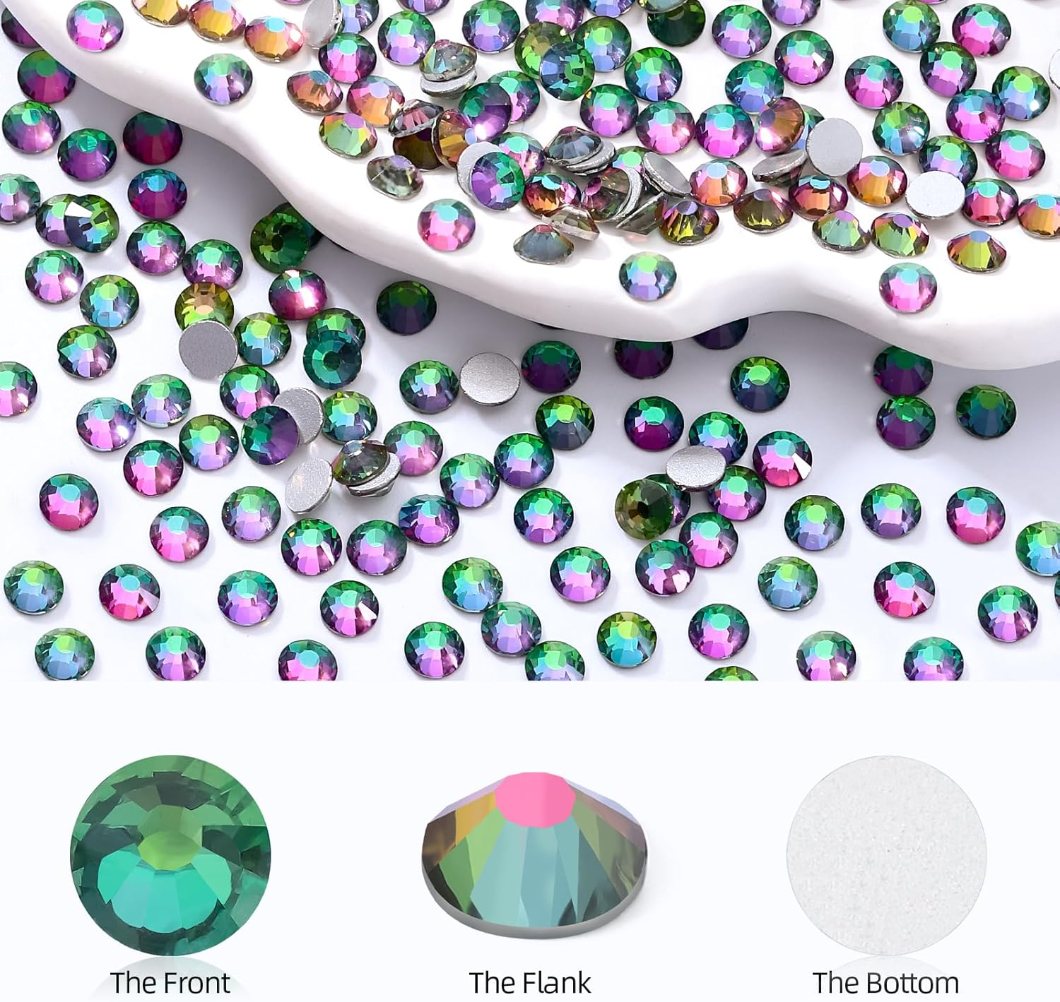 Green Volcano Flatback Rhinestones, Glass Rhinestones for Nail Art and Craft, Glue Fix, Loose Crystal Gemstones(Green Volcano, SS16, 1440pcs, 3.8-4.0mm)