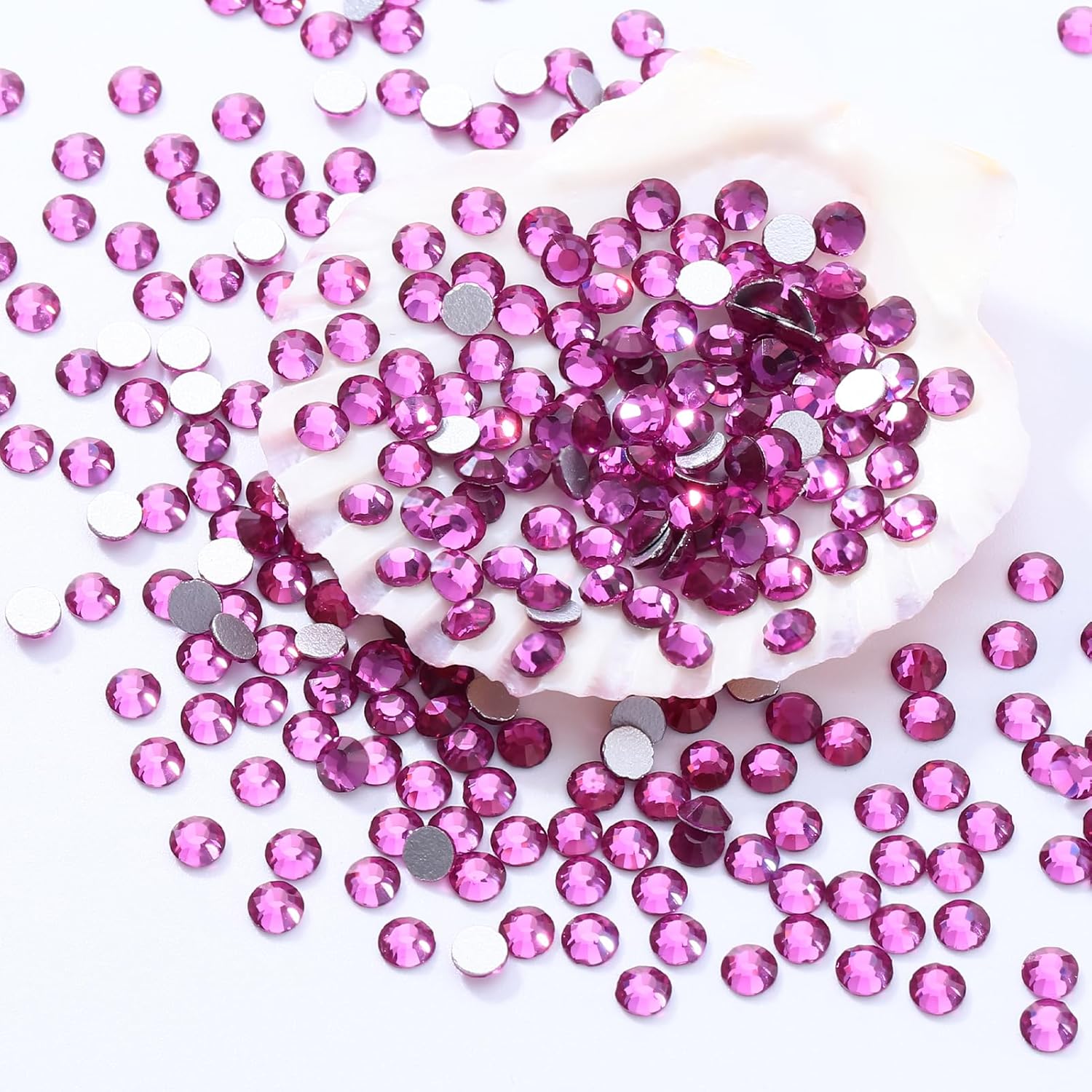 Fuchsia Flatback Rhinestones, Glass Rhinestones for Nail Art and Craft, Glue Fix, Loose Crystal Gemstones(Fuchsia, SS4, 1440pcs, 1.5-1.7mm)