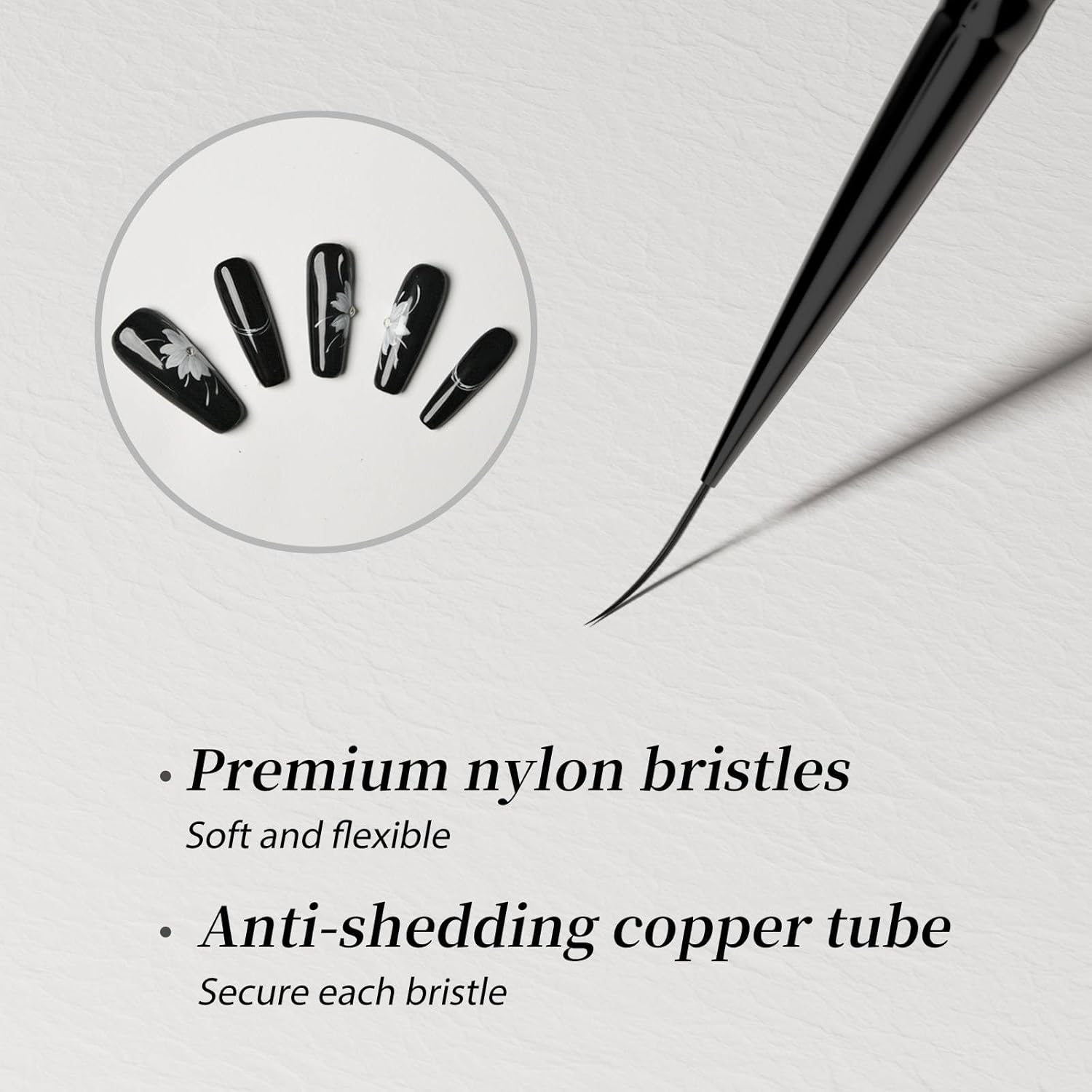 Nail Art Liner Brushes 5Pcs Dotting Pen Tools Nail Art Brushes Thin Liner Set(4/8/12/15/20 mm) for Long Lines, Thin Details Gel Polish Nail Paintings Double-End Nail Art Tools