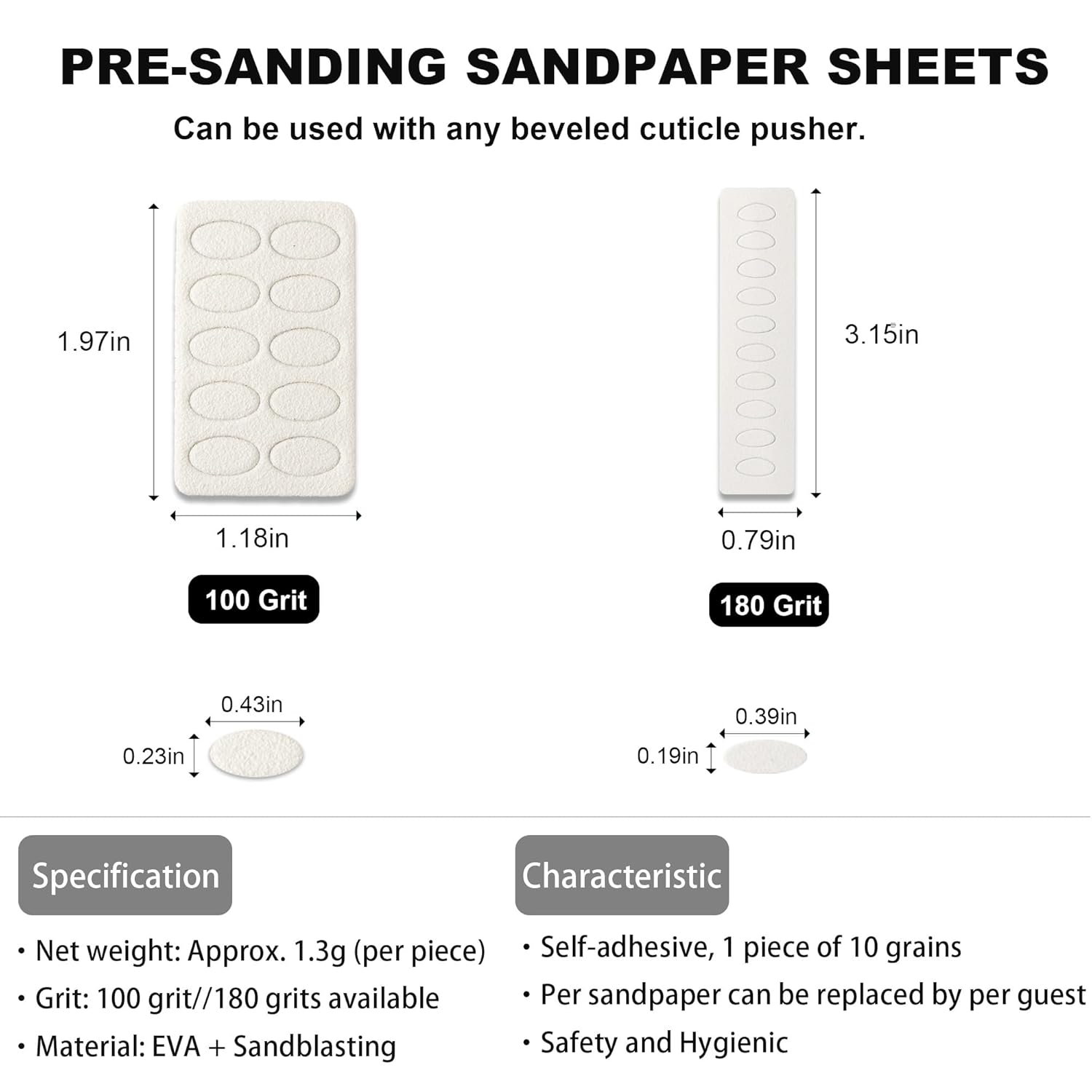 Pre-treatment Cuticle Pusher, Russian Prep Nail Pushers, Dual Ended Cuticle Remover with 100/180 Grit Sandpaper Sheets, Nail Care for Manicure Pedicure Nail Art