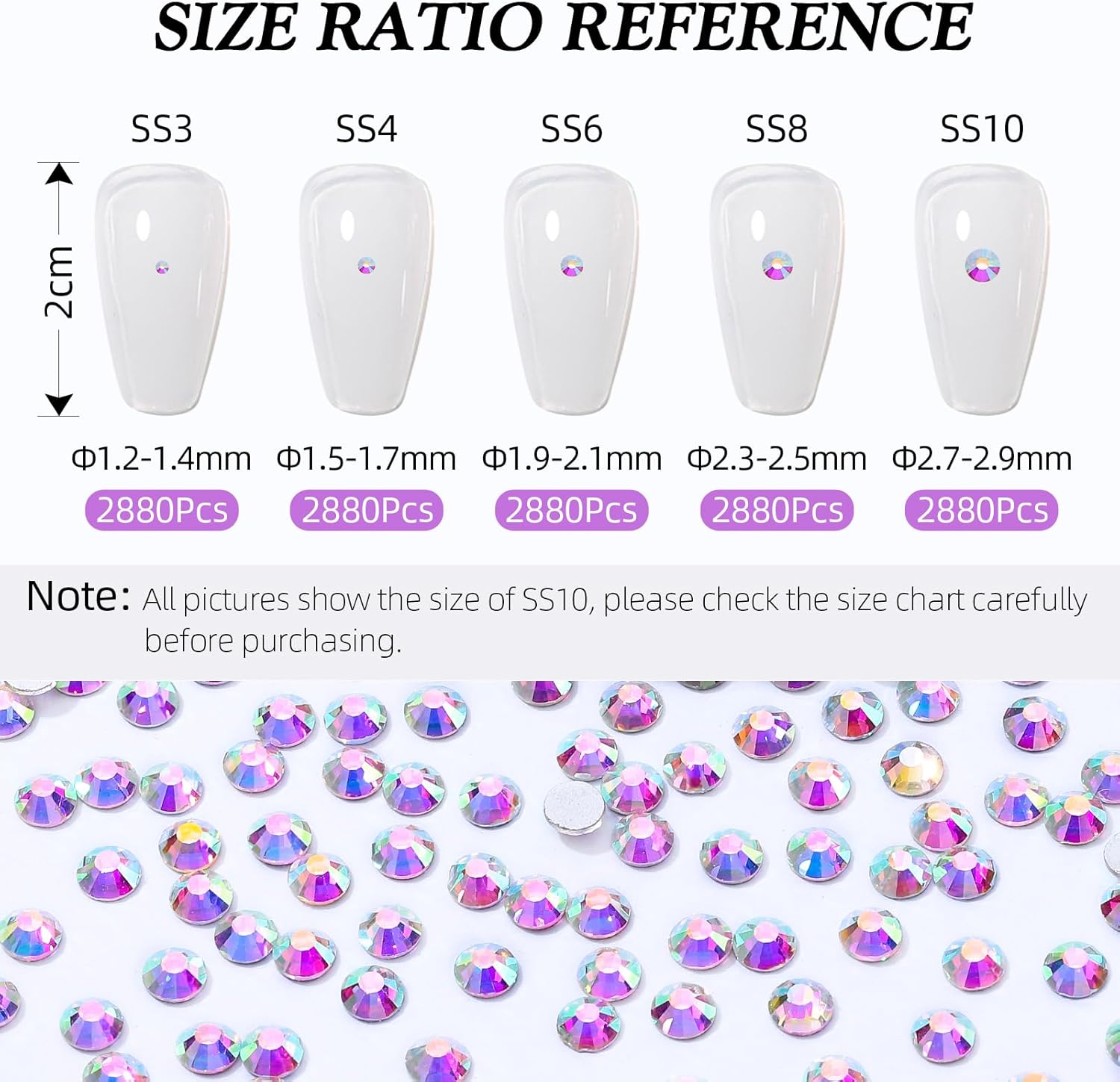 Crystal AB Flatback Rhinestones, Glass Rhinestones for Nail Art and Craft, Glue Fix, Loose Crystal Gemstones(Crystal AB, SS3, 2880pcs, 1.3-1.4mm)