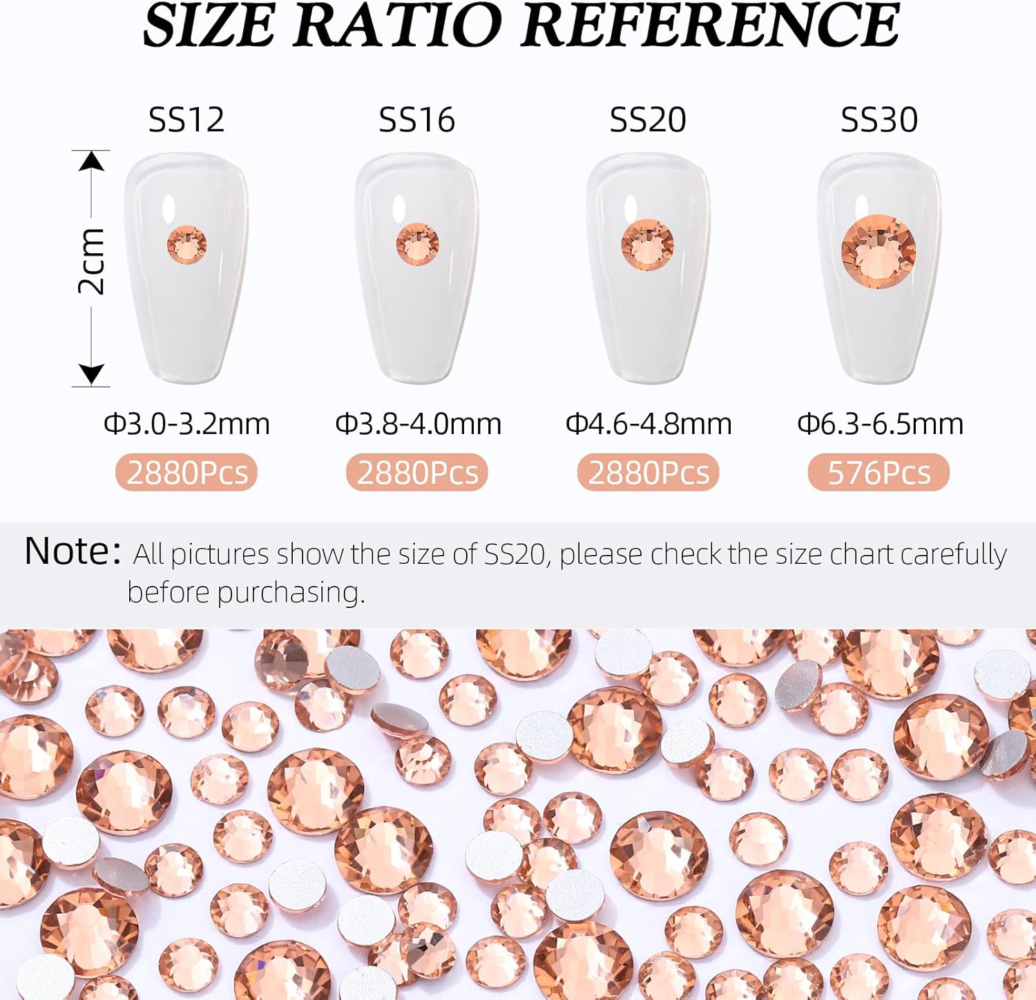 - Product Packaging: Bags packaging SS12 2.9~3.0 MM - 2880 Pcs champagne flatback rhinestones.
