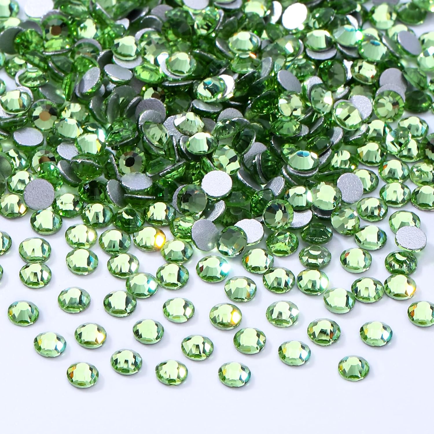 Light Green Flatback Rhinestones, Glass Rhinestones for Nail Art and Craft, Glue Fix, Loose Crystal Gemstones(Lt.Green, SS8, 2880pcs, 2.3-2.5mm)