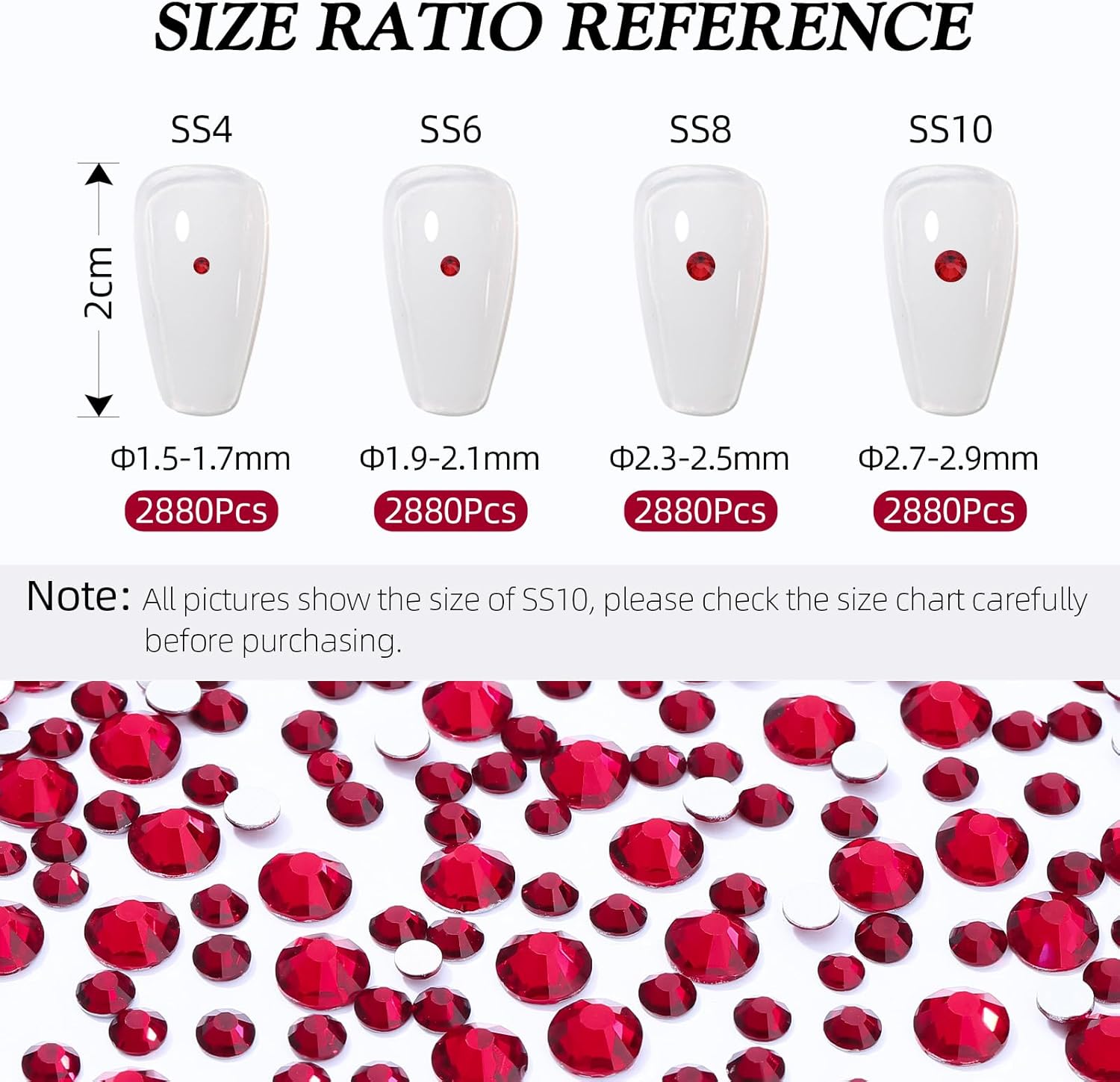 Siam Flatback Rhinestones, Glass Rhinestones for Nail Art and Craft, Glue Fix, Loose Crystal Gemstones(Siam, SS6, 2880pcs, 1.9-2.0mm)