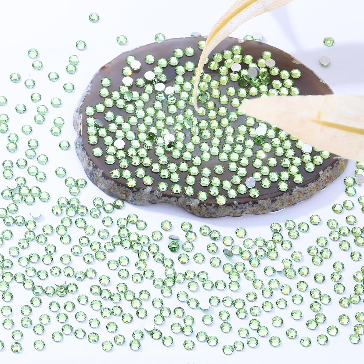 Light Green Flatback Rhinestones, Glass Rhinestones for Nail Art and Craft, Glue Fix, Loose Crystal Gemstones(Lt.Green, SS10, 2880pcs, 2.7-2.8mm)