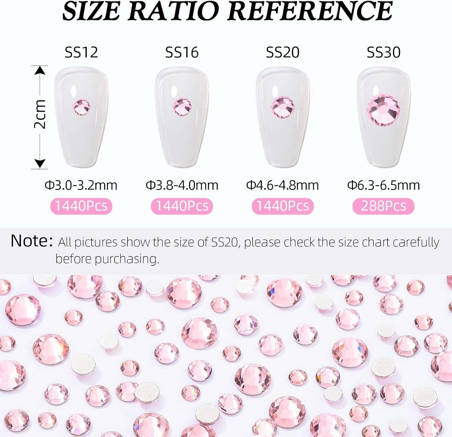 Pink Flatback Rhinestones, Glass Rhinestones for Nail Art and Craft, Glue Fix, Loose Crystal Gemstones(Pink, SS16, 2880pcs, 3.8-4.0mm)