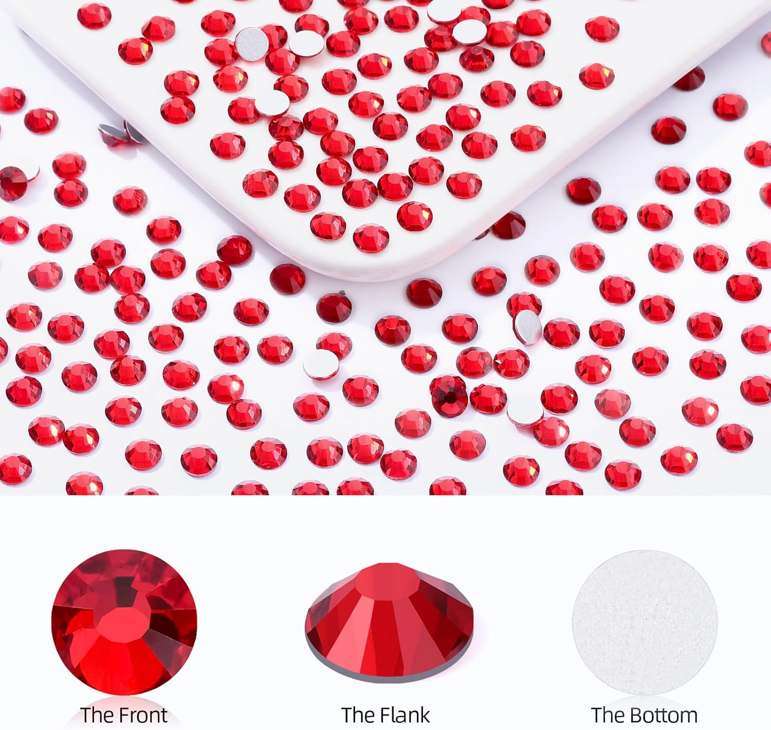 Red Flatback Rhinestones, Glass Rhinestones for Nail Art and Craft, Glue Fix, Loose Crystal Gemstones(Red, SS16, 2880pcs, 3.8-4.0mm)