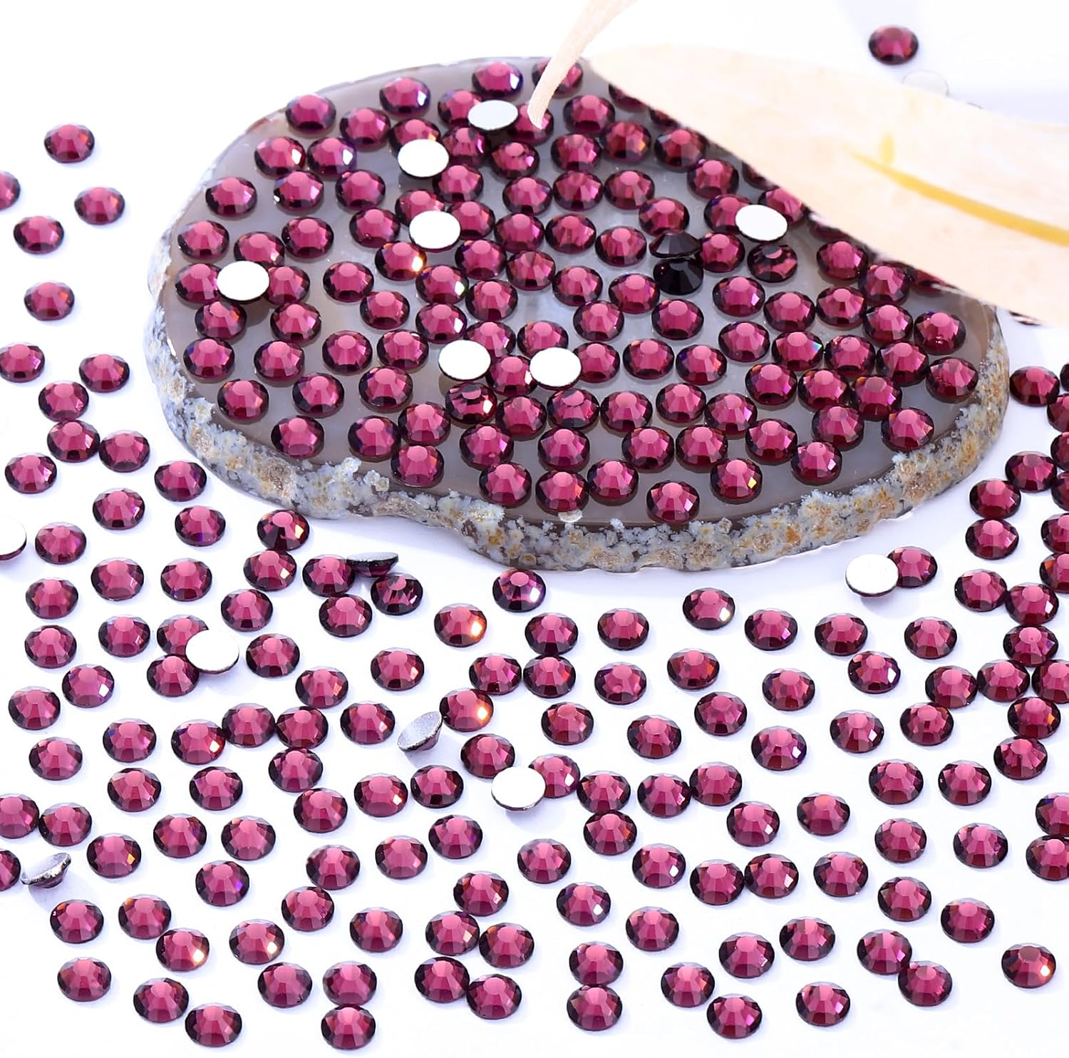 Purple Flatback Rhinestones, Glass Rhinestones for Nail Art and Craft, Glue Fix, Loose Crystal Gemstones(Purple, SS12, 2880pcs, 2.9-3.0mm)
