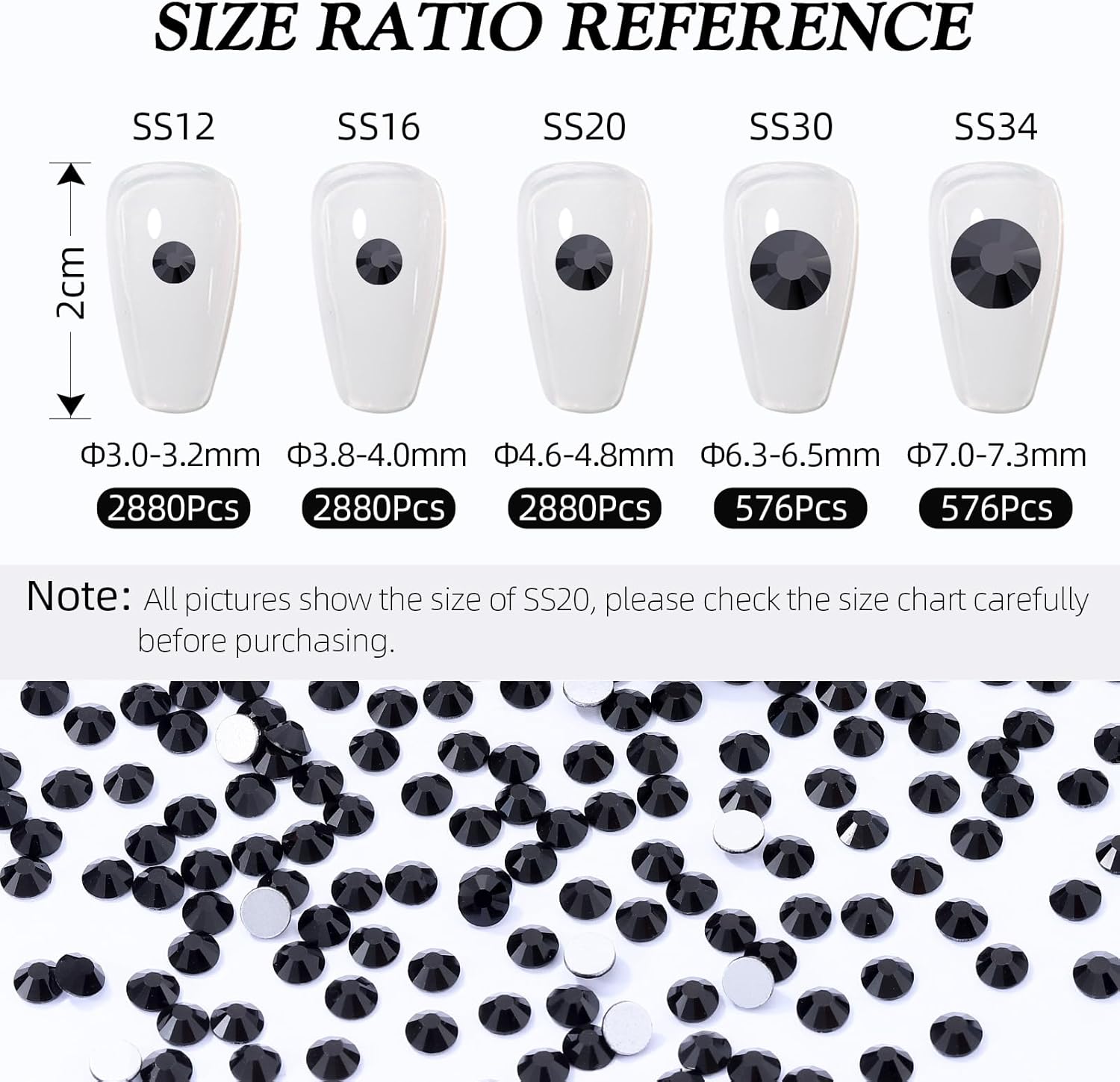 Black Flatback Rhinestones, Glass Rhinestones for Nail Art and Craft, Glue Fix, Loose Crystal Gemstones(Black, SS34, 576pcs, 7.1-7.3mm)
