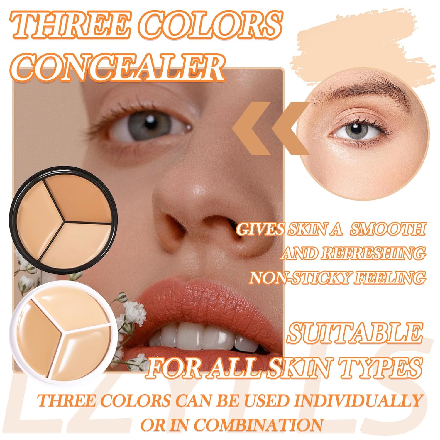 - đ¸ăThree color concealer paletteăMakeup cream contour palette can be used in different areas, to solve a variety of skin imperfections. Three colors can be freely matched, not only can be used in a single color, but also can be mixed.