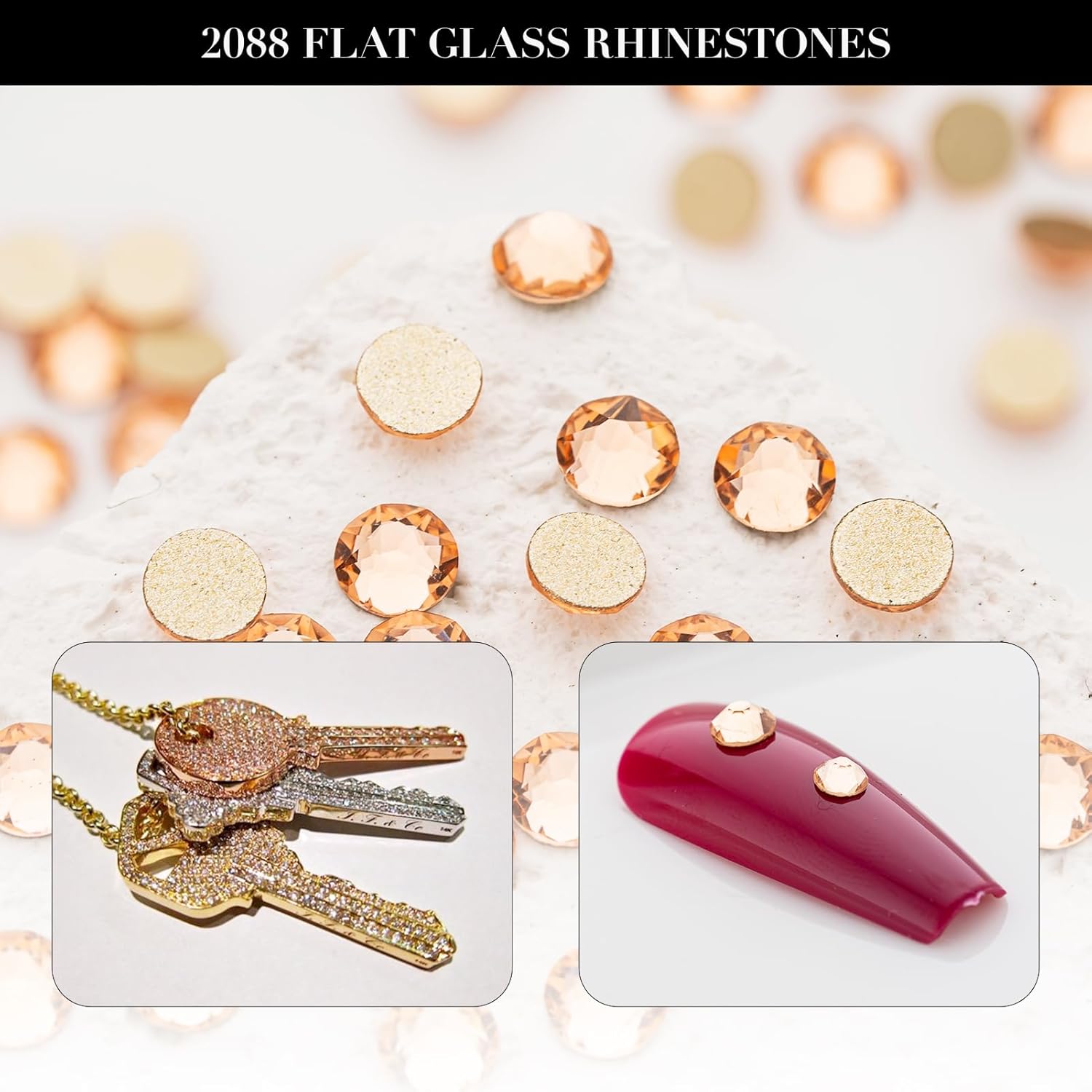 - RHINESTONES FOR NAIL ART AND CRAFTING: Flat-back rhinestones are Non-hotfix Rhinestones and should be used with Glue. Can be glued using proper gluing techniques to various materials such as fabrics, wood, metal, and plastic. They are used in many industries for costumes, dance, dancesport, skating, equestrian, show clothes, nail art, and crafts.
