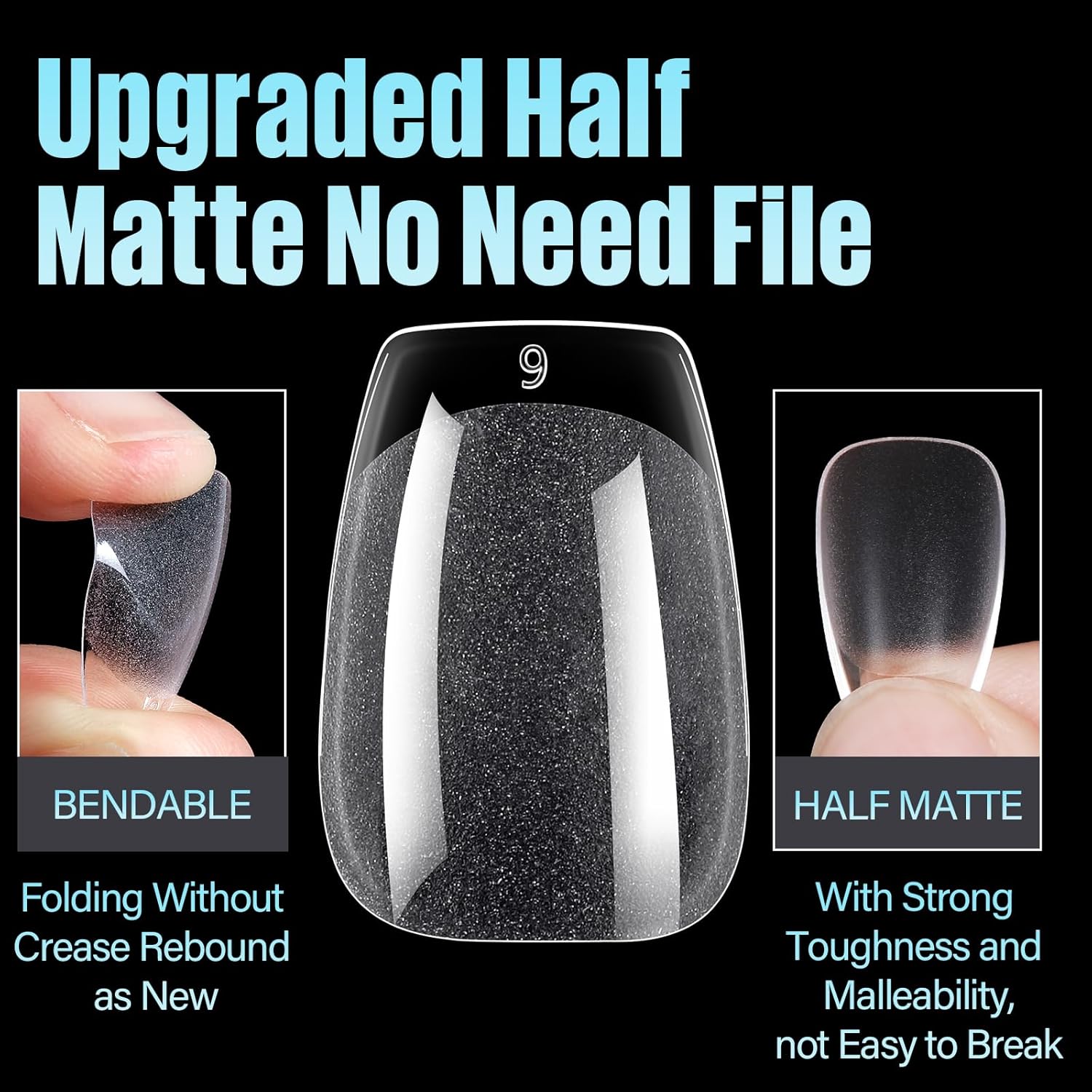 - 【Upgraded Half Matte gel Nails】TOMICCA uses half matte nail tips to better fit your natural nails, Pre-shaped, and you can enjoy the privilege of “No file, no base coat”without worrying about your nails becoming thinner and uglier due to polishing, providing better care for your nails.