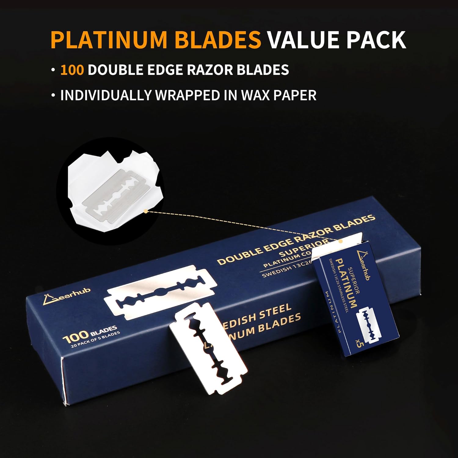 Gearhub Premium 100 Count Double Edge Safety Razor Blades Refills Swedish 13C26 Stainless Steel Platinum Coated, Mild to Medium Sharpness for Smooth Shaves