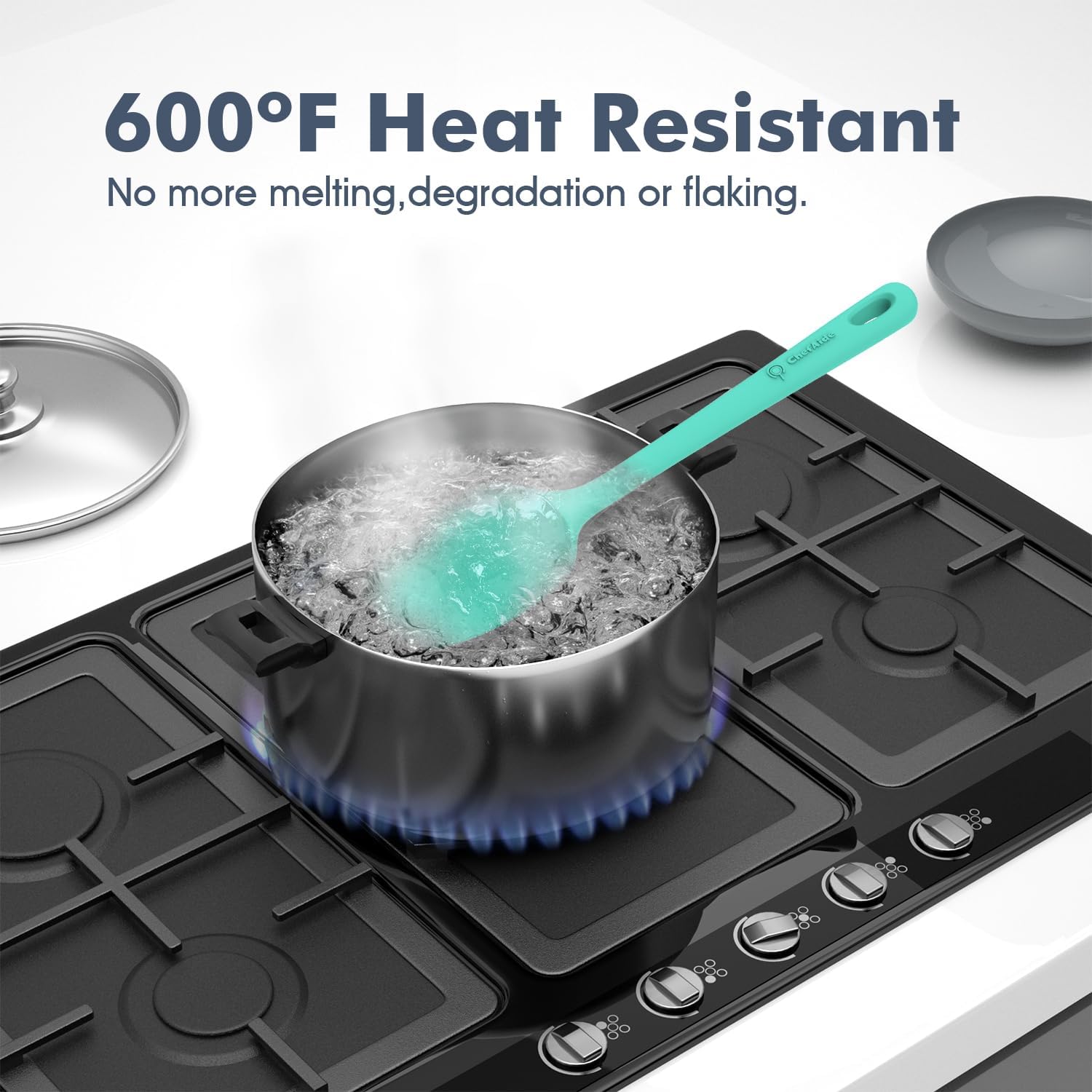- Premium 100% Food Grade Silicone: The silicone spatula set is made of healthy and friendly material, resistant to high temperatures up to 600 °F. No more melting, cracking and worrying