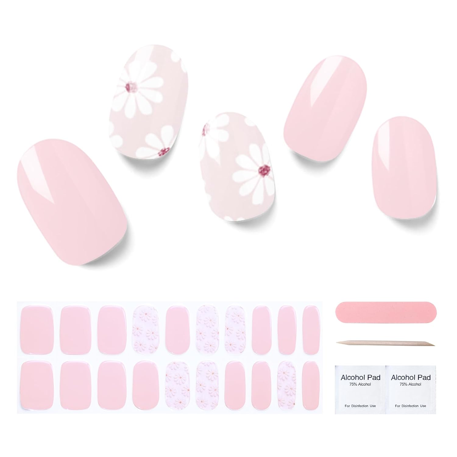 Semi Cured Gel Nail Strips, 20 pcs Stikers, Wraps, Salon-Quality, 2 Weeks Long Lasting, Jasmine Breeze