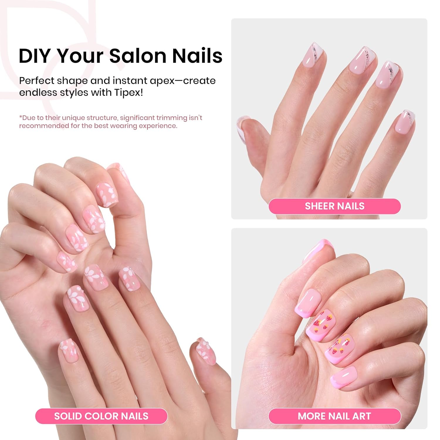 - WARM TIPS: Beetles Tipex tips are designed with a thicker, structured shape to deliver a strong apex and salon-level hold. They’re best suited for NAIL PROFESSIONALS or EXPERIENCED USERS who are familiar with Tipex pre-etched, pre-building tips. For optimal results, we highly recommend using solid nail glue to ensure a secure and even application. Not ideal for beginners or those preferring thin, flexible tips.
