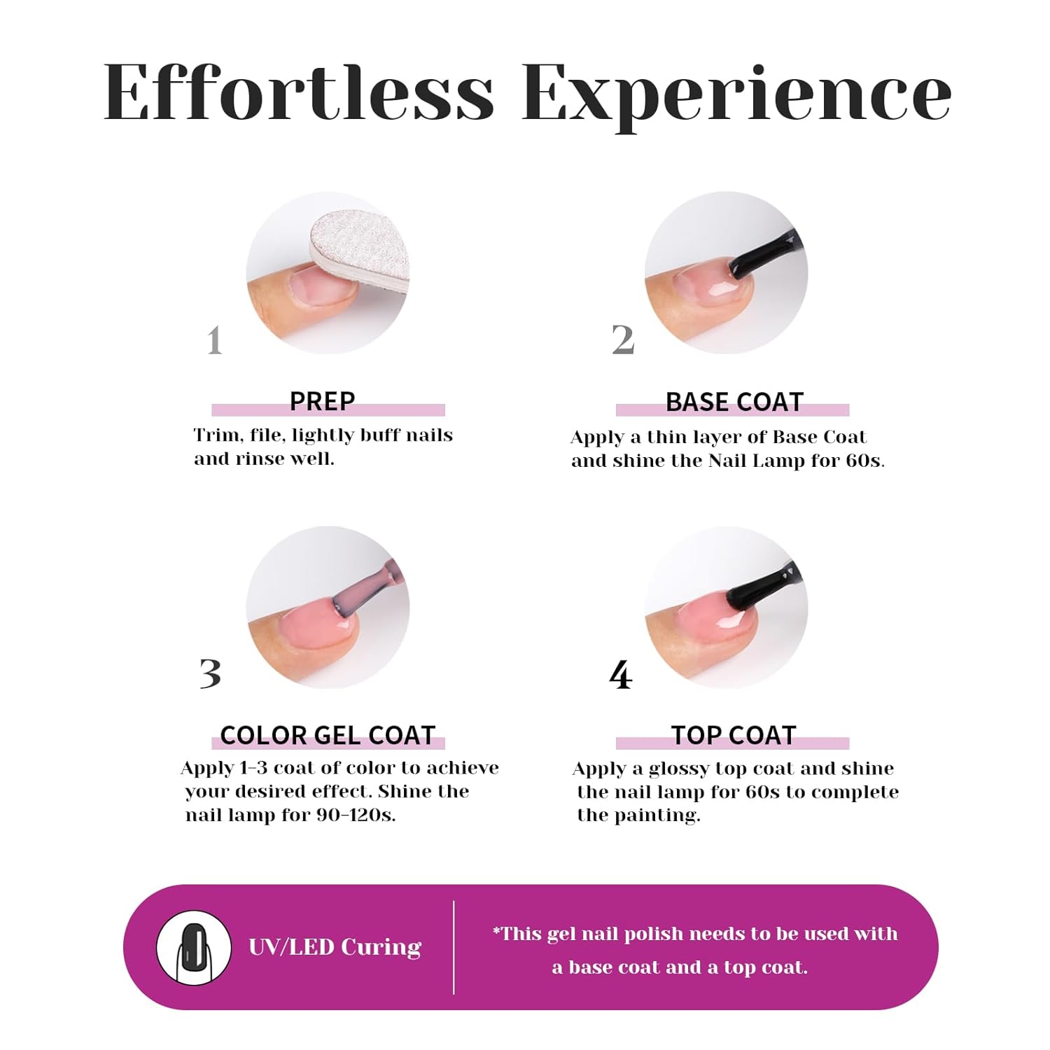 - Professional salon-quality: Experience professional-quality results in the comfort of your own home with this high-quality gel nail polish. Achieve salon-worthy nails without the hassle and expense of frequent salon visits.