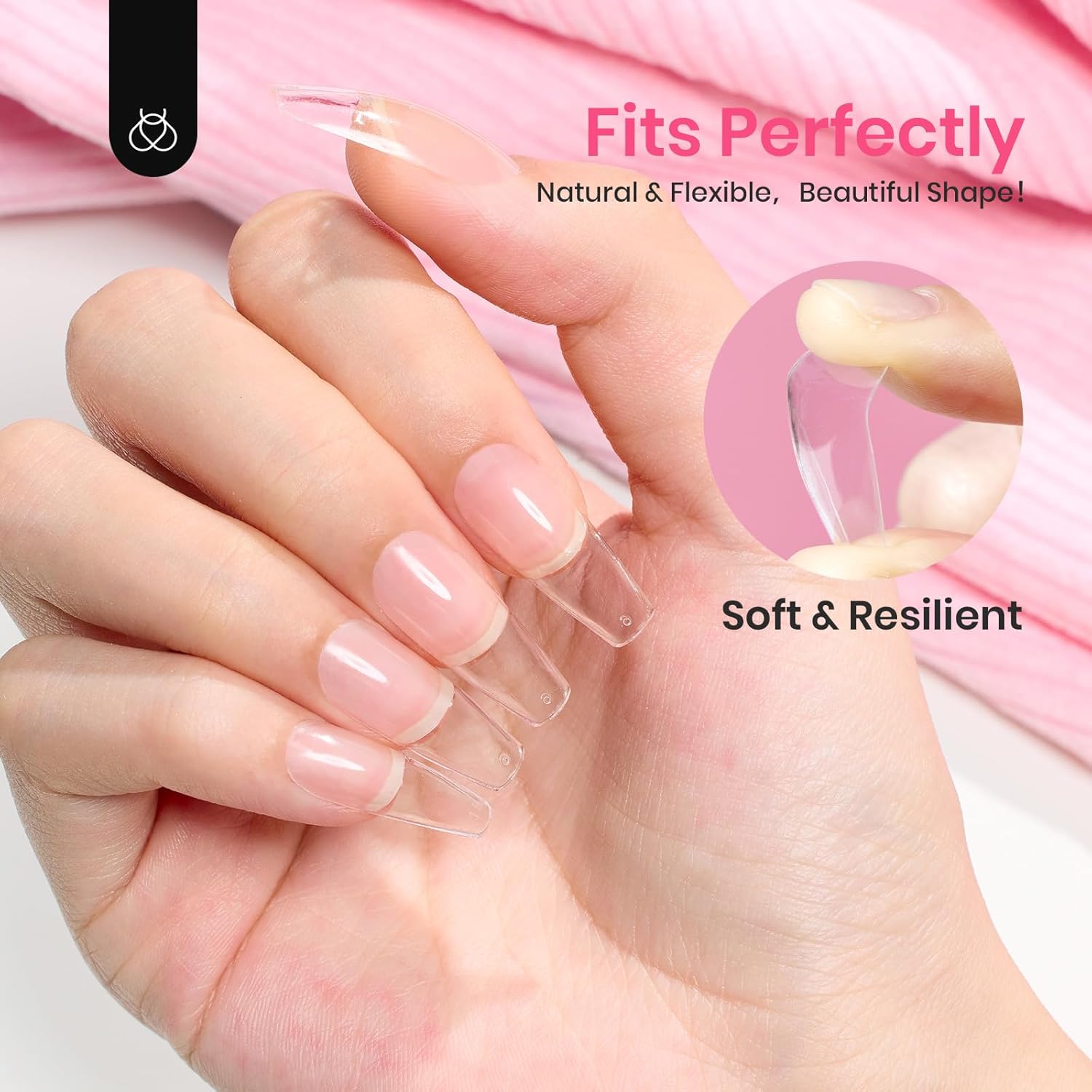 Beetles Gel Nail Tips Easy Nail Extension Pre-shaped Medium Coffin Nail Tips 12 Sizes 288Pcs Gelly Tips Clear Press on Nail Tips Full Cover False Nails Gifts for Girls Women