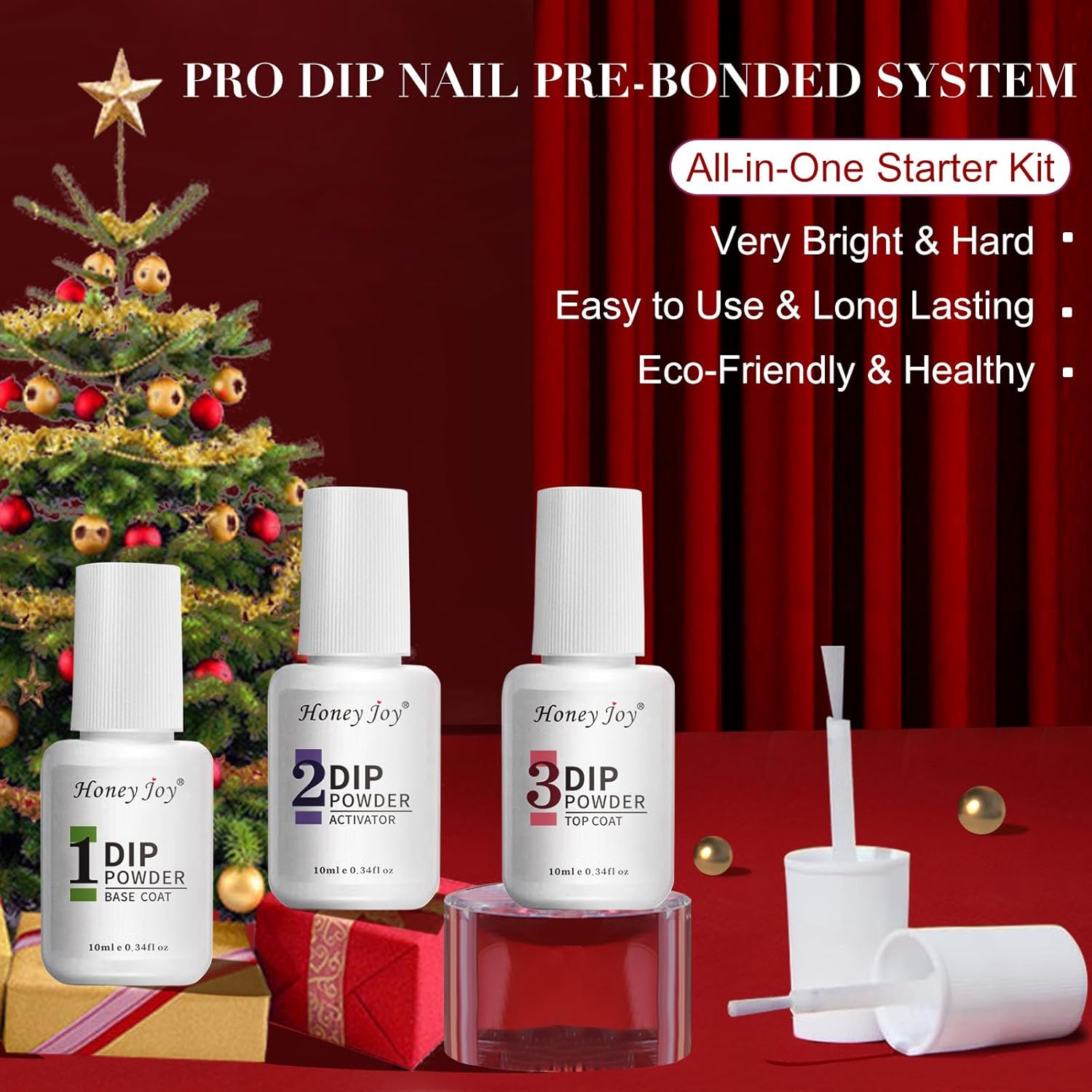 - đDip Powder Nail Kit Includes: Embrace the Classic Elegance of Halloween Christmas with our Honey Joy Harvest Orange Dip Powder Liquid Set, a perfect dip powder nail kit starter. This kit contains 4 x radiant dipping powder shades (10g each) for that soft blush to playful bubblegum pop, along with a dip nails liquid set including base & top coat, and activator (10ml each). Additionally, you'll find 4 professional tools (including a nail brush, cleaner stick, and nail file) to achieve that coveted high-quality, salon-effect at home with our comprehensive dipped nails powder starter kit.
