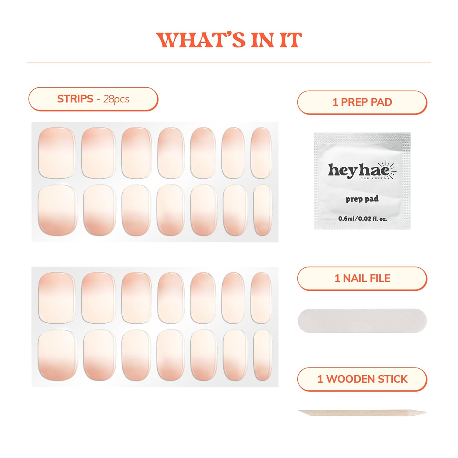 Semi Cured Gel Nail Strips | No LED Lamp Needed | Ombre, Neutral, Spring | Easy Apply & Remove, Salon Quality |Includes 28 Strips, 1 Prep Pads, Nail File & Wooden stick- Hey, Sleepover Tonight?