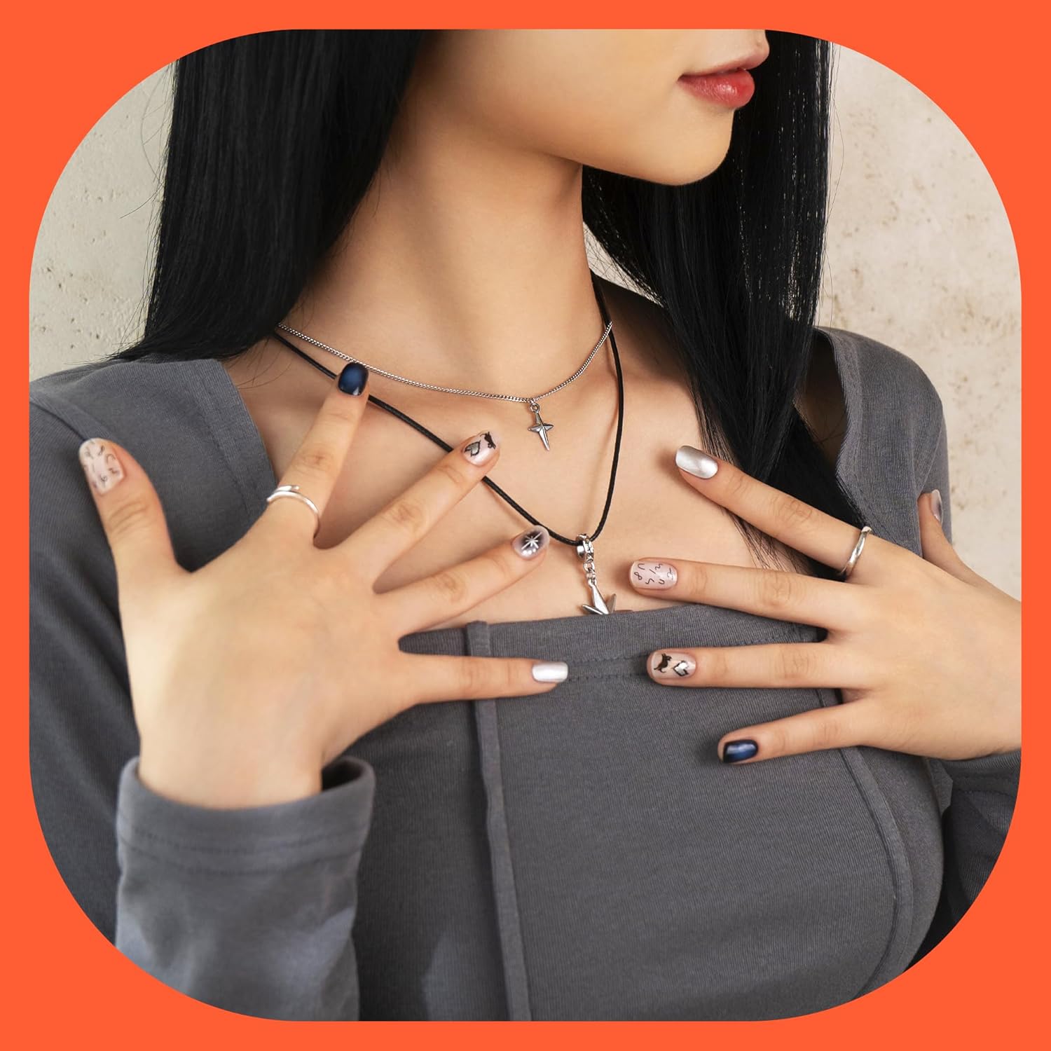 Semi Cured Gel Nail Strips | No LED Lamp Needed | Glitter, Black, White | Easy Apply & Remove, Salon Quality | Includes 28 Strips, 1 Prep Pads, Nail File & Wooden Stick - Hey, You’re Timeless