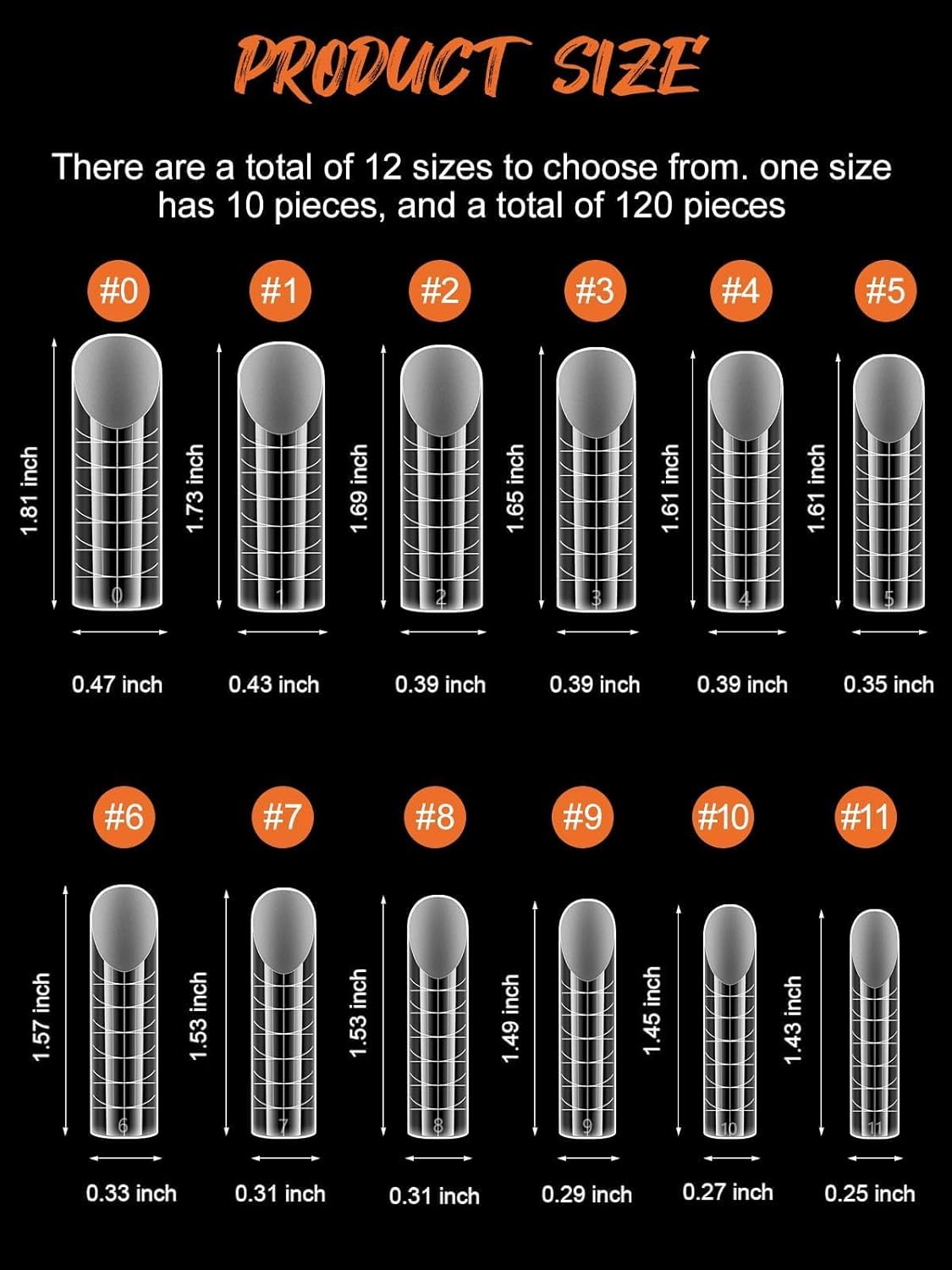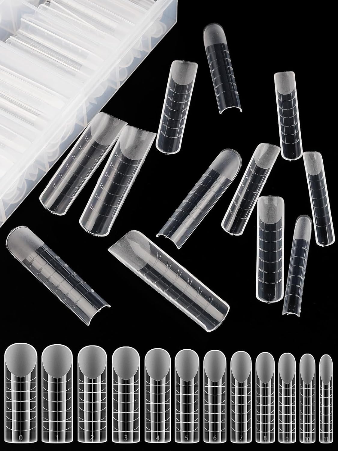 - 【Nail Form Mold with 12 Sizes】120pcs clear nail forms offers 12 different nail sizes , and each size of long nail tips is separated by a small grid, a total of 12 grids, so they're easy and convenient to choose the suitable size to meet your nail's need.