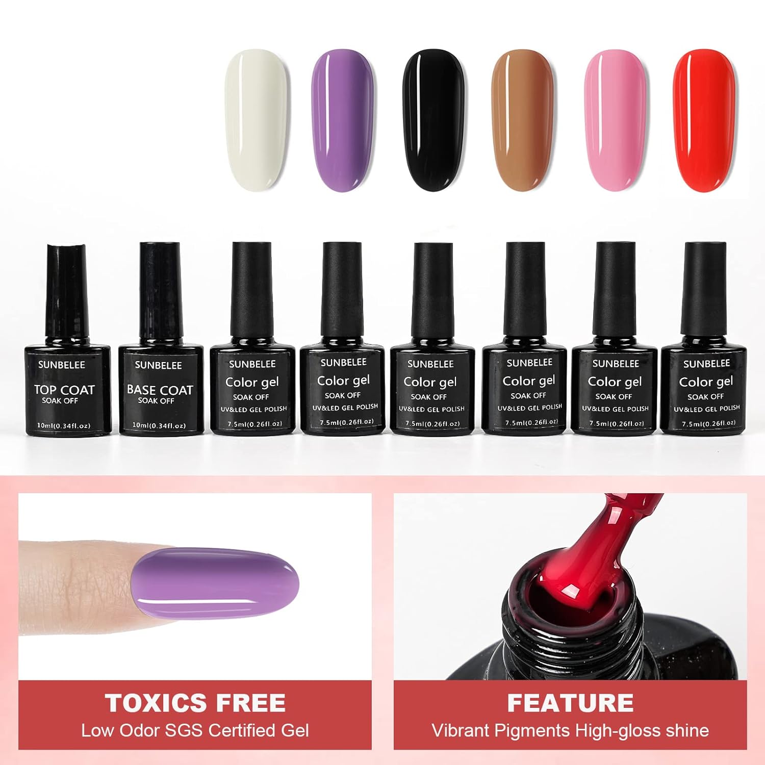 - High-quality Gel Nail Polish Kit: BLIFF 6 classic colors gel nail polish (7ml each bottle) smooth and easy application, even a nail starter can easily make nail salon-grade effect, Can be used alone or with glitter powder, sequins, glitter brick. A simple operation allows you to obtain beautiful nail tips for long lasting and sparkle effect. Contains base coat and glossy & top coat.