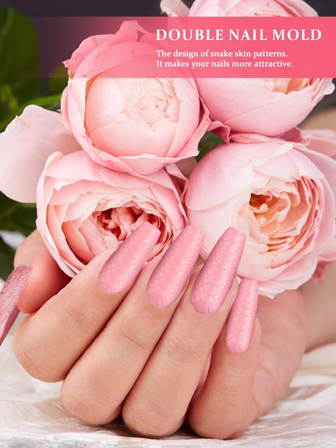 - 【Unique Pattern】Poly nail gel dual forms are designed with 3D snake skin pattern on the nail surface, so that you can create special styles with the unique pattern. Dual Nail Forms can be well groomed to your nail shape, good for painted clear nails.