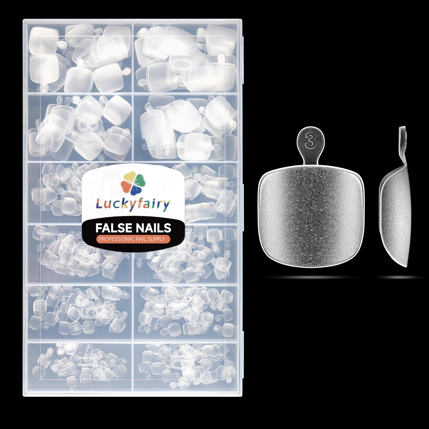 - ❤️PRE-FILE MATTE TOENAIL TIPS--The innovate short square toe gel nails features lightweight, flexible and long-lasting. The clear toe nail tips for better coloring effect, pre-inner full matte has superb adhesion for better bonding of your toetips. Luckyfairy toe nail tips give you safe and strong nail guards.
