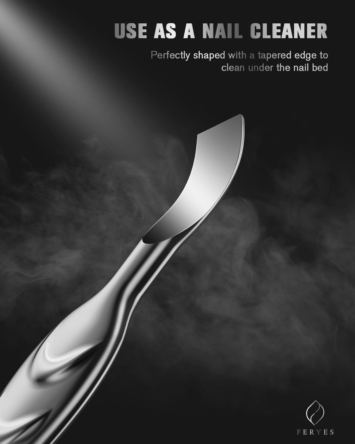 - Dual-Ended Versatility for Comprehensive Care - Each FERYES Cuticle Pusher features a dual-ended design, providing versatility for your manicure routine. One end is tailored for gently pushing back cuticles, while the other is perfect for cleaning under the nail edge or removing nail gel.