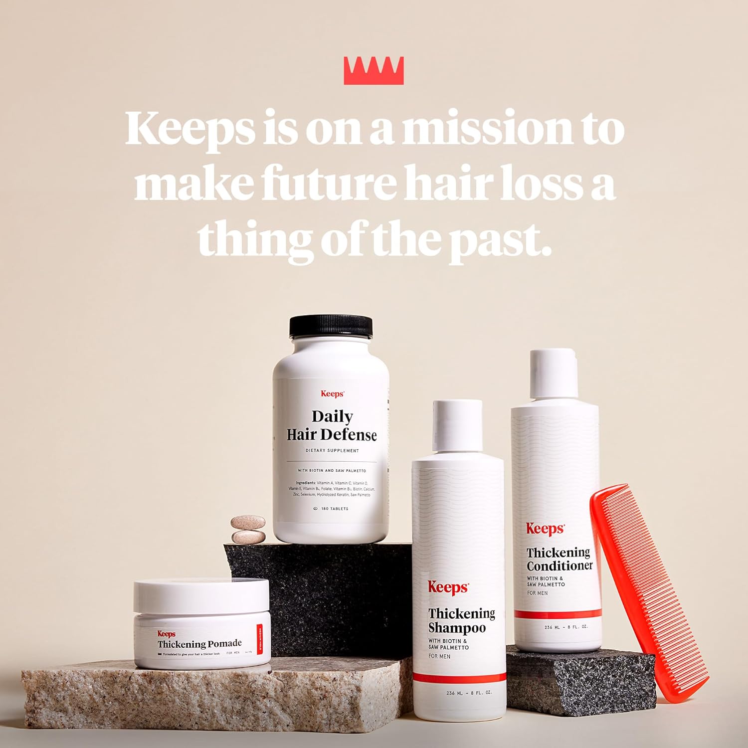 - If you've gone from barely noticing your hairline to obsessing over it every day, you know better than anyone: Losing your hair sucks. We built Keeps to give guys across the country an affordable, expert-backed plan.