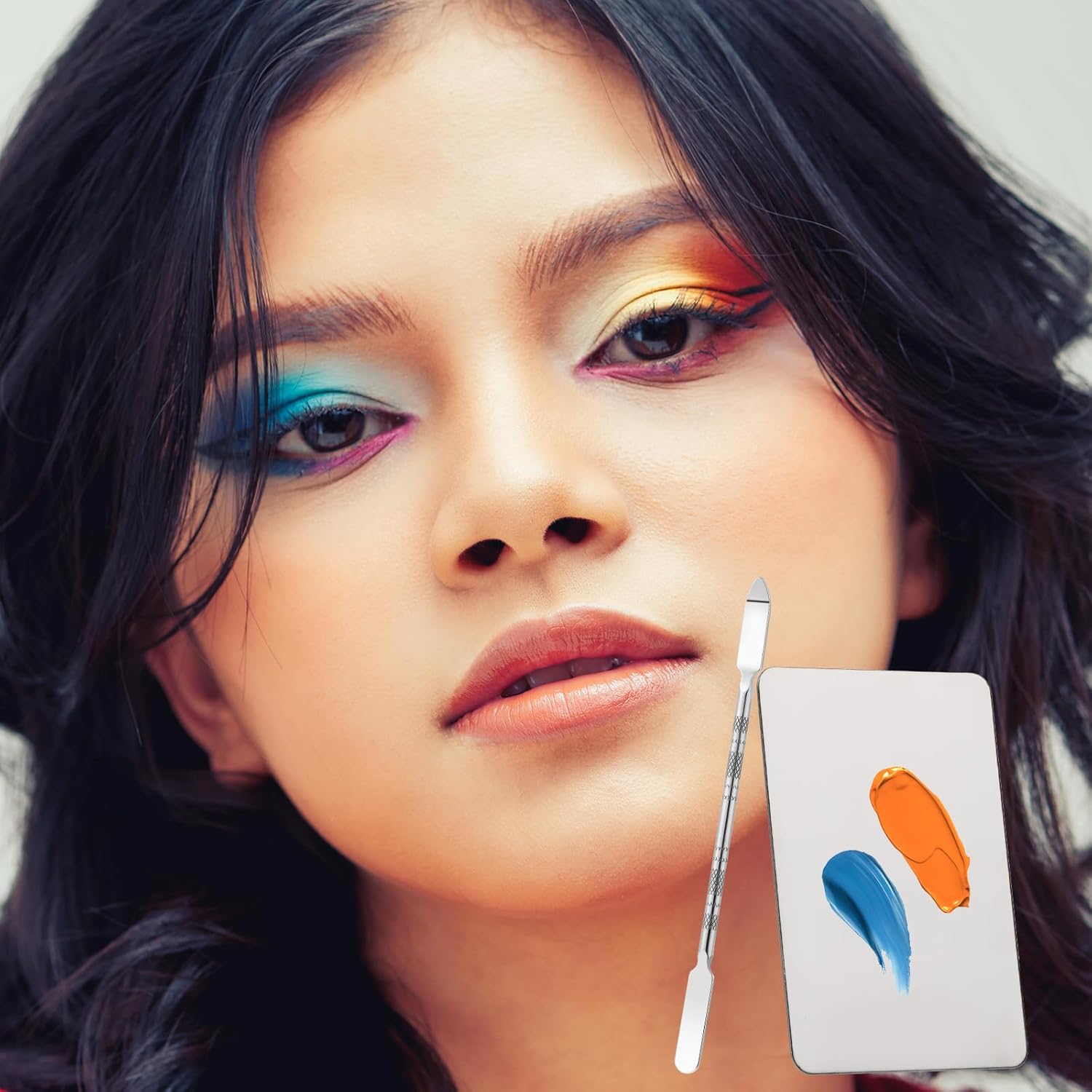 2 Pcs Stainless Steel Makeup Palette Makeup Spatula Palette with Foundation Spatula Professional Cosmetic Palette for Mixing Foundation Eye Shadow Nail DIY Art