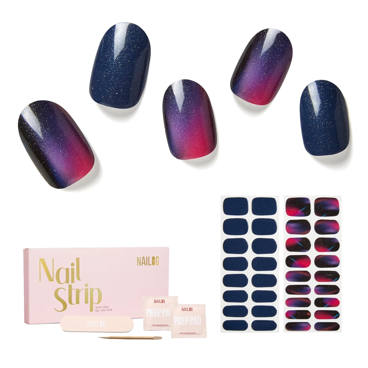 - ăEASY TO APPLYăWith an easy & fast application method, you can get a perfect nail look in minutes! - Nailog semi cured nail stickers are suitable for both manicurists and beginners, so you need not hesitate, even if you have never had a manicure.