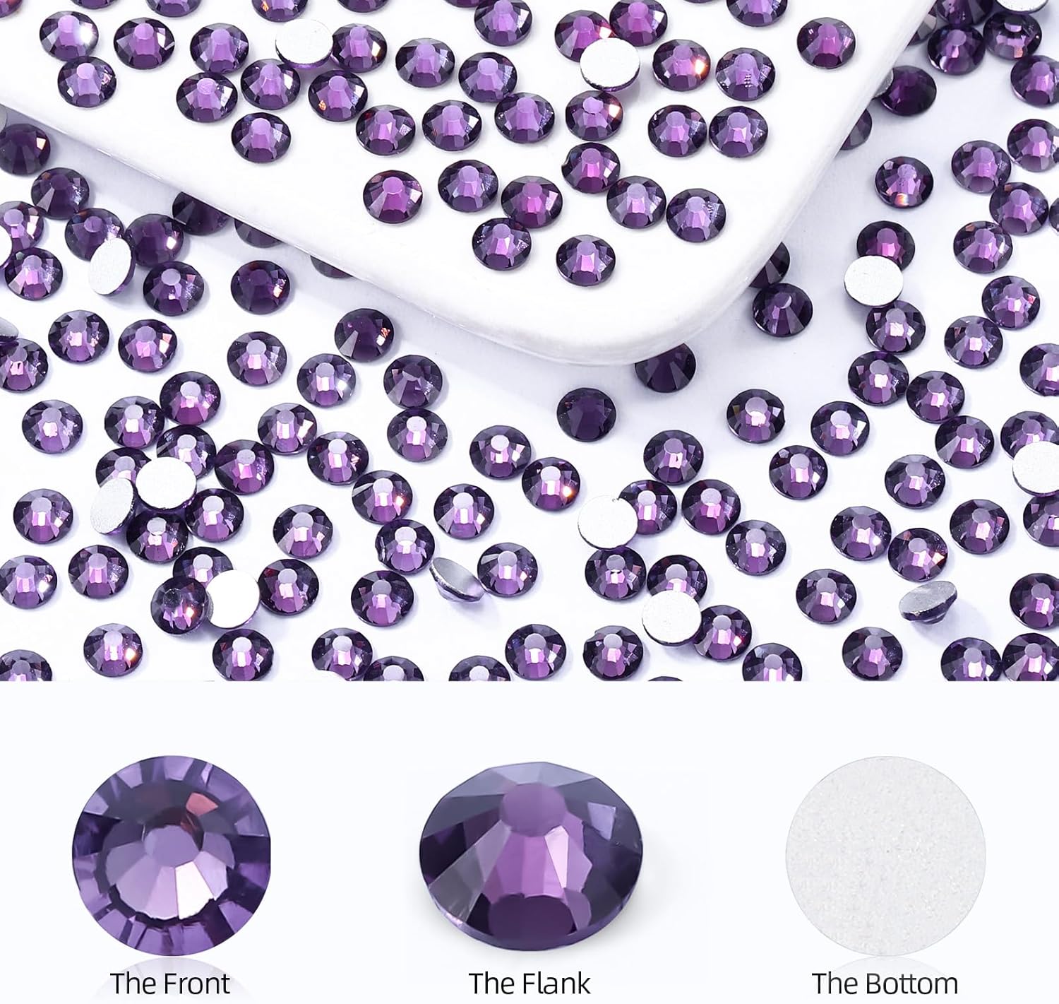 Tanzanite Flatback Rhinestones, Glass Rhinestones for Nail Art and Craft, Glue Fix, Loose Crystal Gemstones(Tanzanite, SS10, 1440pcs, 2.7-2.8mm)
