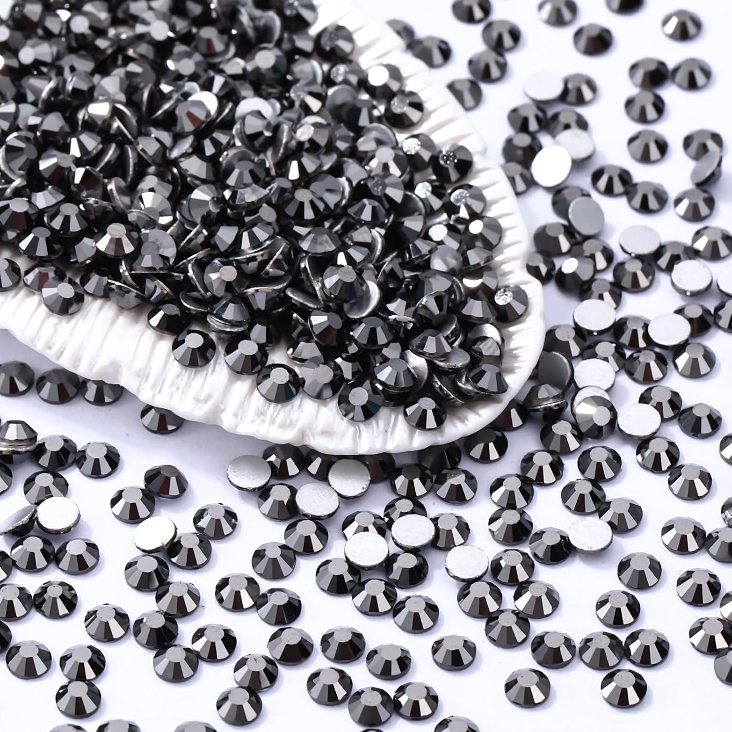 Black Hematite Flatback Rhinestones, Glass Rhinestones for Nail Art and Craft, Glue Fix, Loose Crystal Gemstones(Black Hematite, SS4, 1440pcs, 1.5-1.7mm)