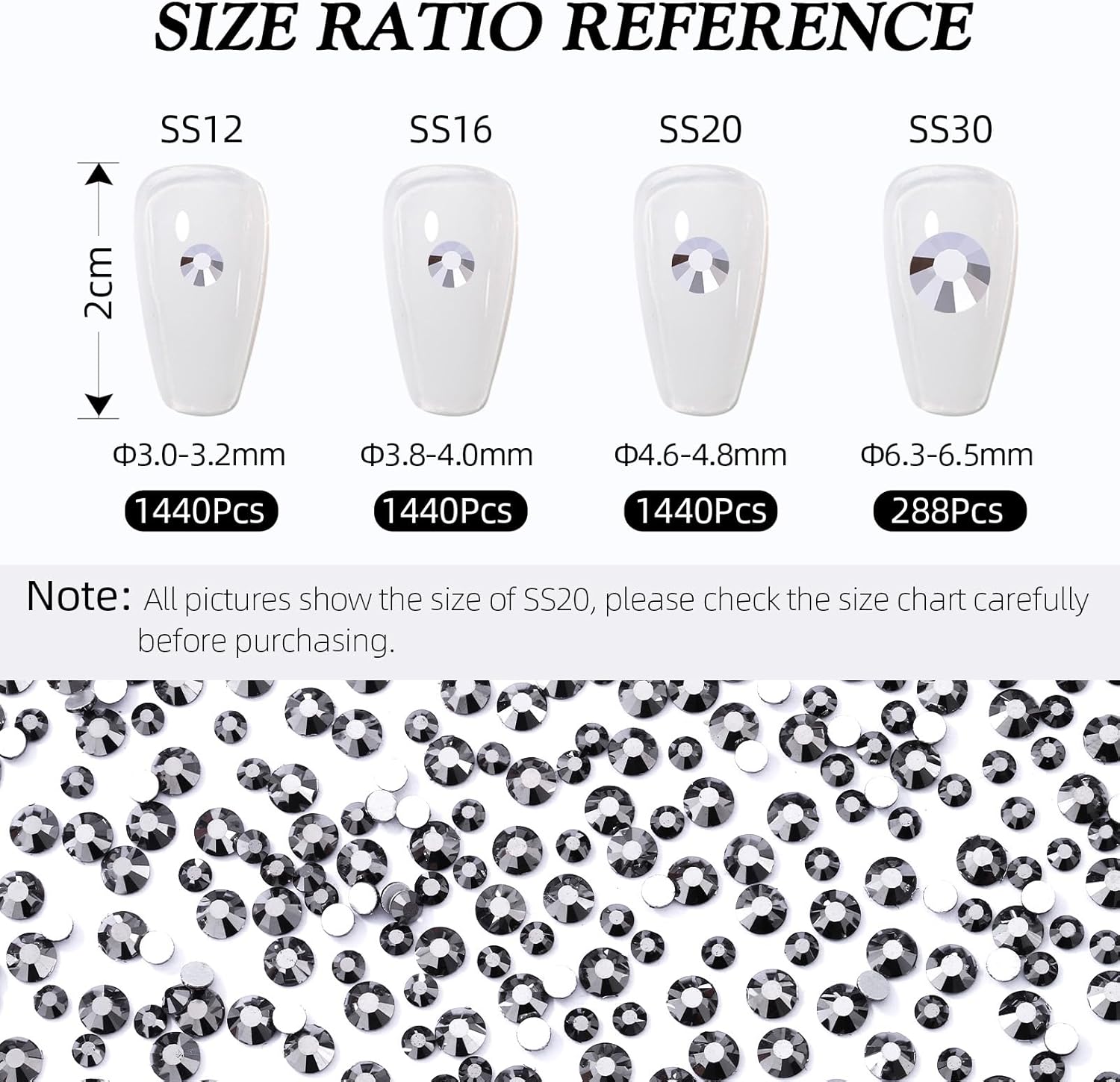Black Hematite Flatback Rhinestones, Glass Rhinestones for Nail Art and Craft, Glue Fix, Loose Crystal Gemstones(Black Hematite, SS20, 1440pcs, 4.6-4.8mm)