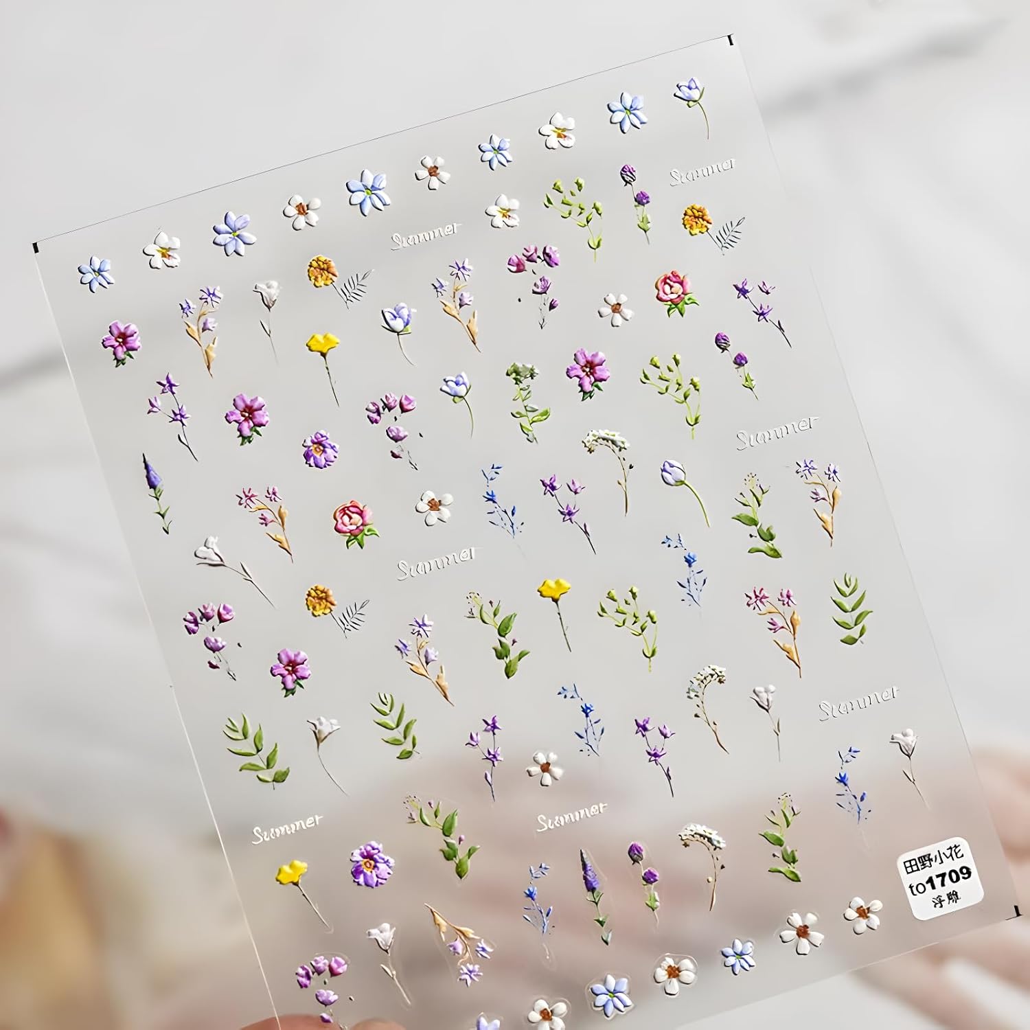 Flower Nail Art Stickers Decals 5D Embossed Self Adhesive Flower Nail Stickers for Nail Art Spring Summer Nail Decals Colorful Floral Nail Supplies Decoration for Women and Girls 2 Sheets