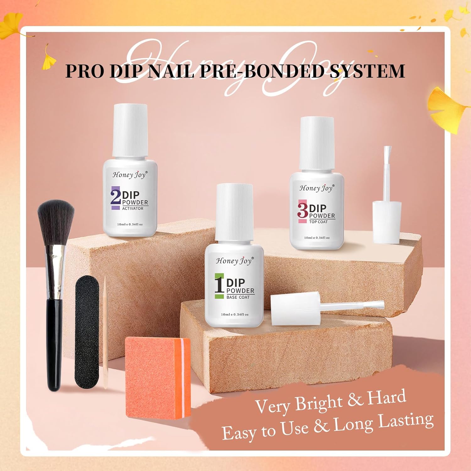 - đDip Powder Nail Kit Includes: Embrace the Classic Elegance of Halloween with our Honey Joy Midnight Black, Harvest Orange Dip Powder Liquid Set, a perfect dip powder nail kit starter. This kit contains 4 x radiant dipping powder shades (10g each) for that soft blush to playful bubblegum pop, along with a dip nails liquid set including base & top coat, and activator (10ml each). Additionally, you'll find 4 professional tools (including a nail brush, cleaner stick, and nail file) to achieve that coveted high-quality, salon-effect at home with our comprehensive dipped nails powder starter kit.
