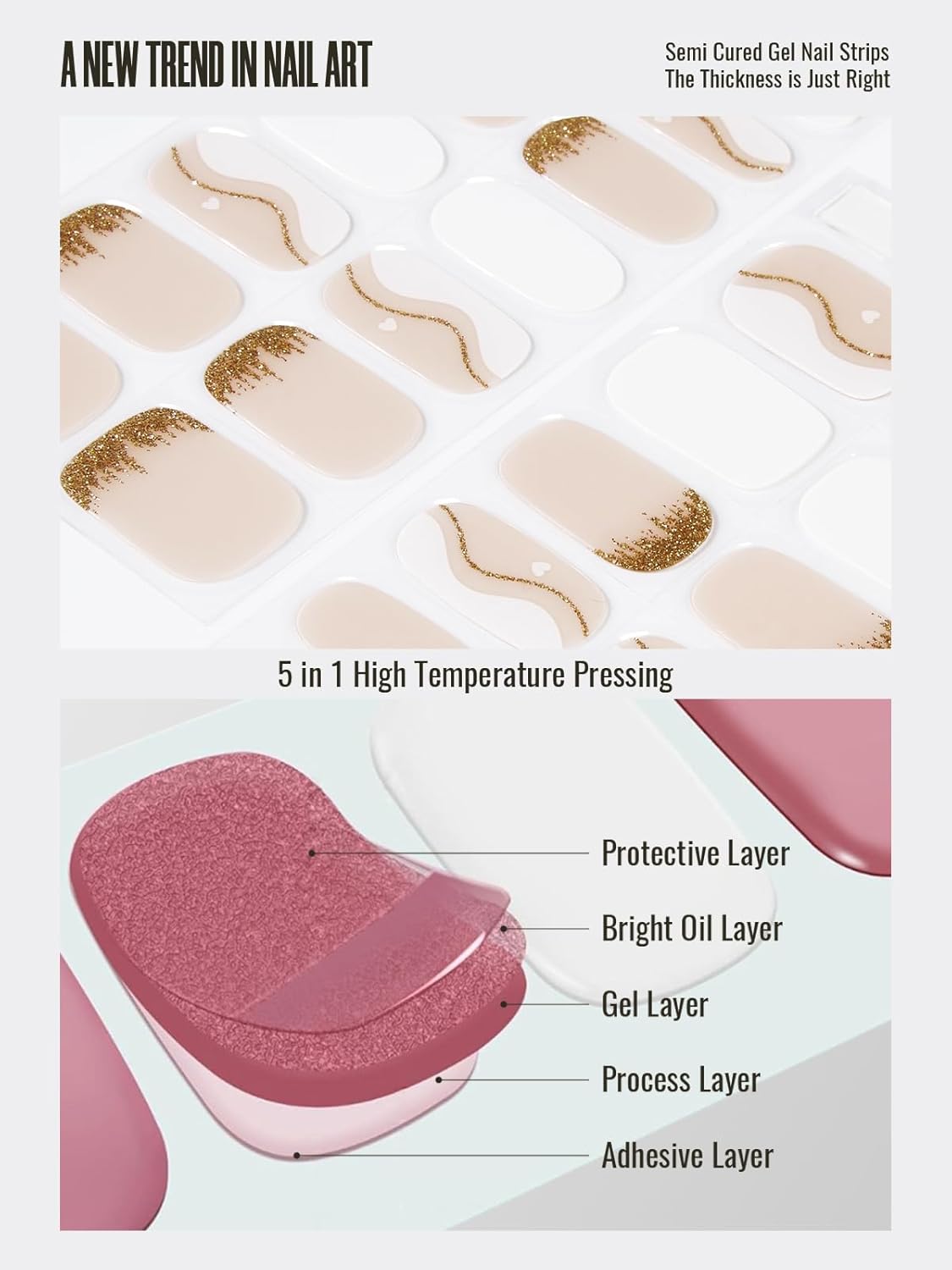 - ăSalon-Quality DIY at HomeăThe gel strips makes use of odorless, non-toxic ink, premium polymer gel, and non-irritating glue. Achieve professional-looking nails in minutes with our semi-cured gel nail strips. Enjoy the durability and shine of a salon manicure without the high cost and time commitment