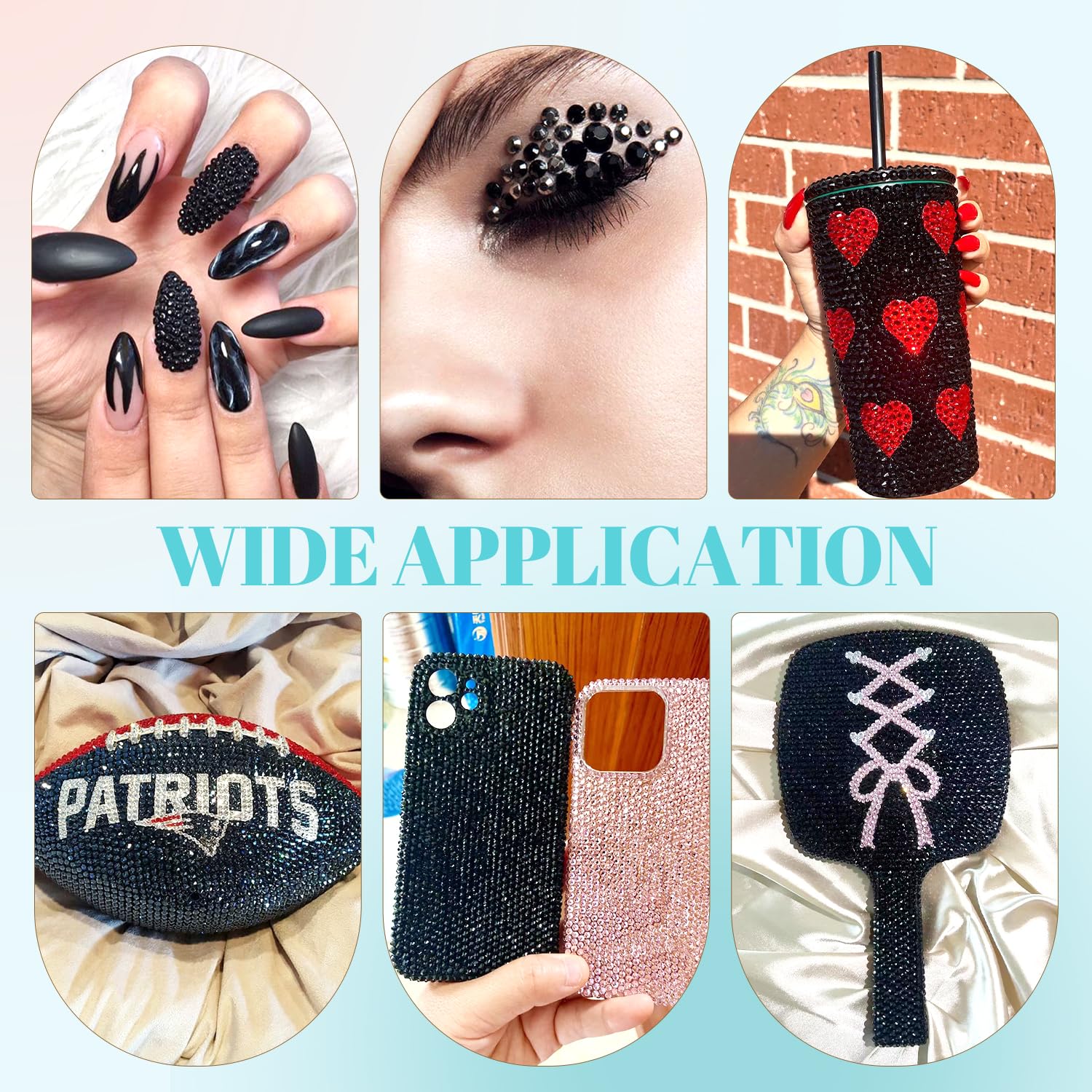 - šWIDE APPLICATION -- These sparkling iridescent resin crystals are perfect for creating dazzling looks. Use them for bedazzling DIY crafts like shoes, tumblers, mugs, bottles, phone cases, popsockets, scrapbooks, photo frames, diamond paintings, greeting cards, bags, glasses, guitars, keychains, hats, masks, hair clips, bracelets, wristbands, clothing, wedding dresses, and more. Apply it to what you want to bling!