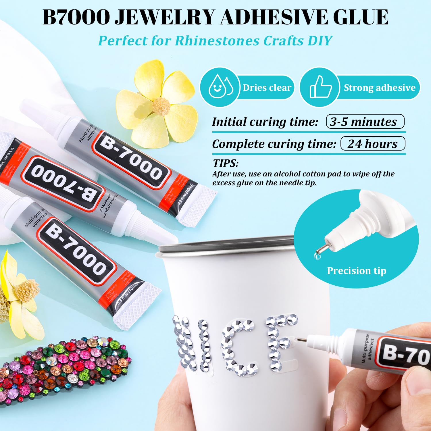 - šSTRONG B7000 GLUE FOR GEMS -- These Non-Hotfix rhinestones are not self-adhesive and need to be used by glue. The equipped B7000 glue has strong adhesion and dries clear. It has a precision needle for easy application. For first use, you can leave the glue head up for a few minutes before opening to avoid overflow. After use, the needle needs to be cleaned with an alcohol wipe so as to avoid a mess.
