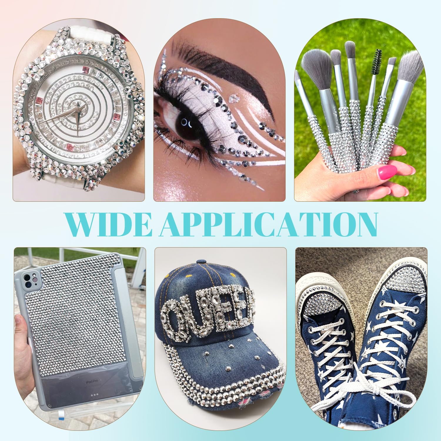 - šWIDE APPLICATION -- These sparkling iridescent resin crystals are perfect for creating dazzling looks. Use them for bedazzling DIY crafts like shoes, tumblers, mugs, bottles, phone cases, popsockets, scrapbooks, photo frames, diamond paintings, greeting cards, bags, glasses, guitars, keychains, hats, masks, hair clips, bracelets, wristbands, clothing, wedding dresses, and more. Apply it to what you want to bling!
